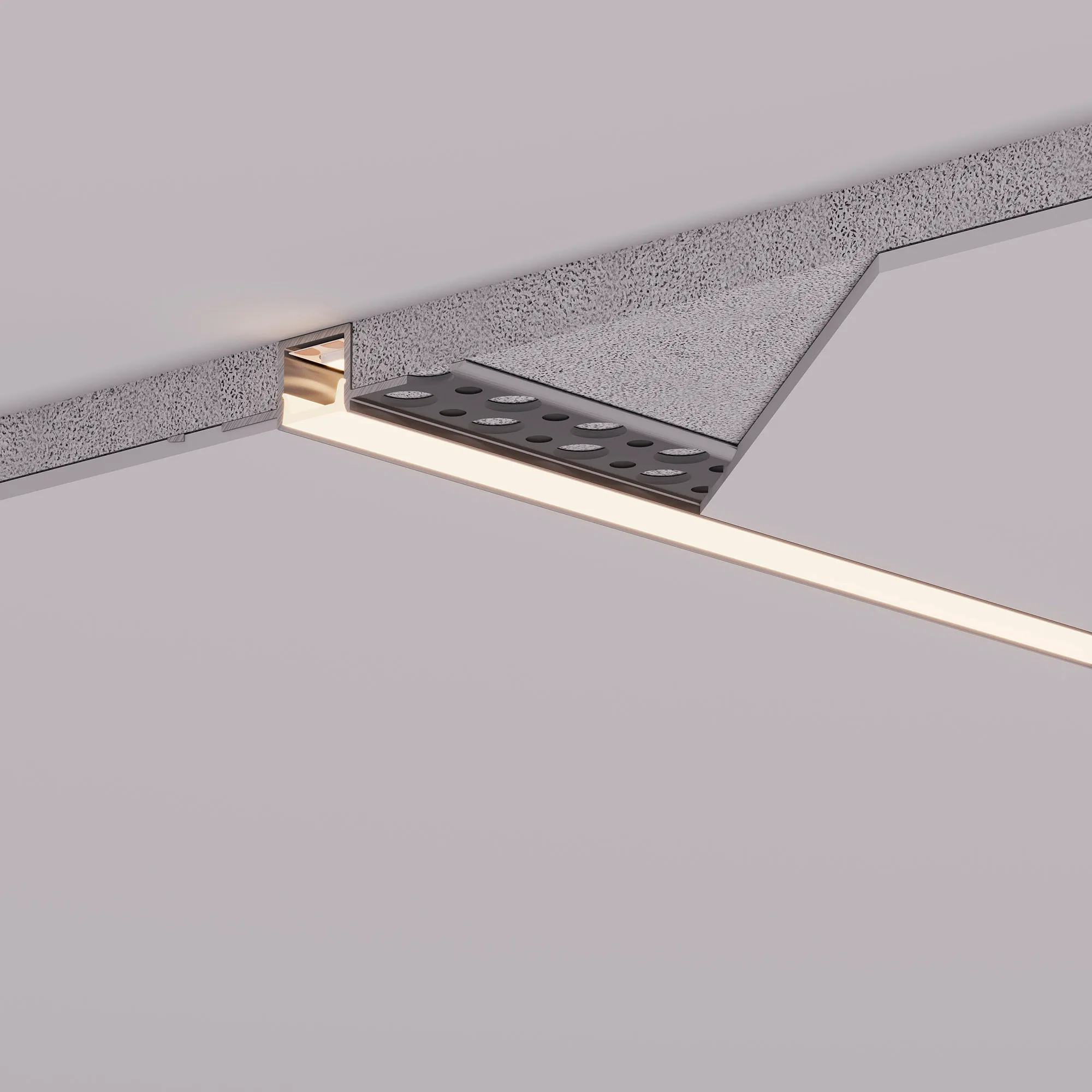 Встраиваемый профиль из анодированного алюминия со скрытым фланцем под строительную отделку устанавливается в потолки и потолочные ниши из гипсокартона.