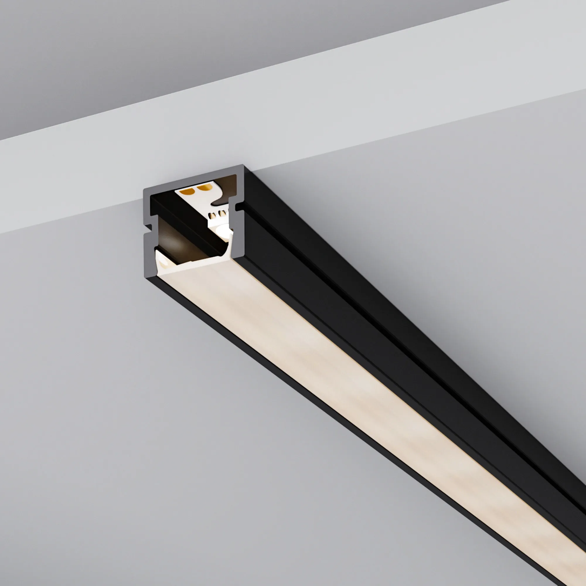 Накладной профиль черного цвета из анодированного алюминия для контурной подсветки.