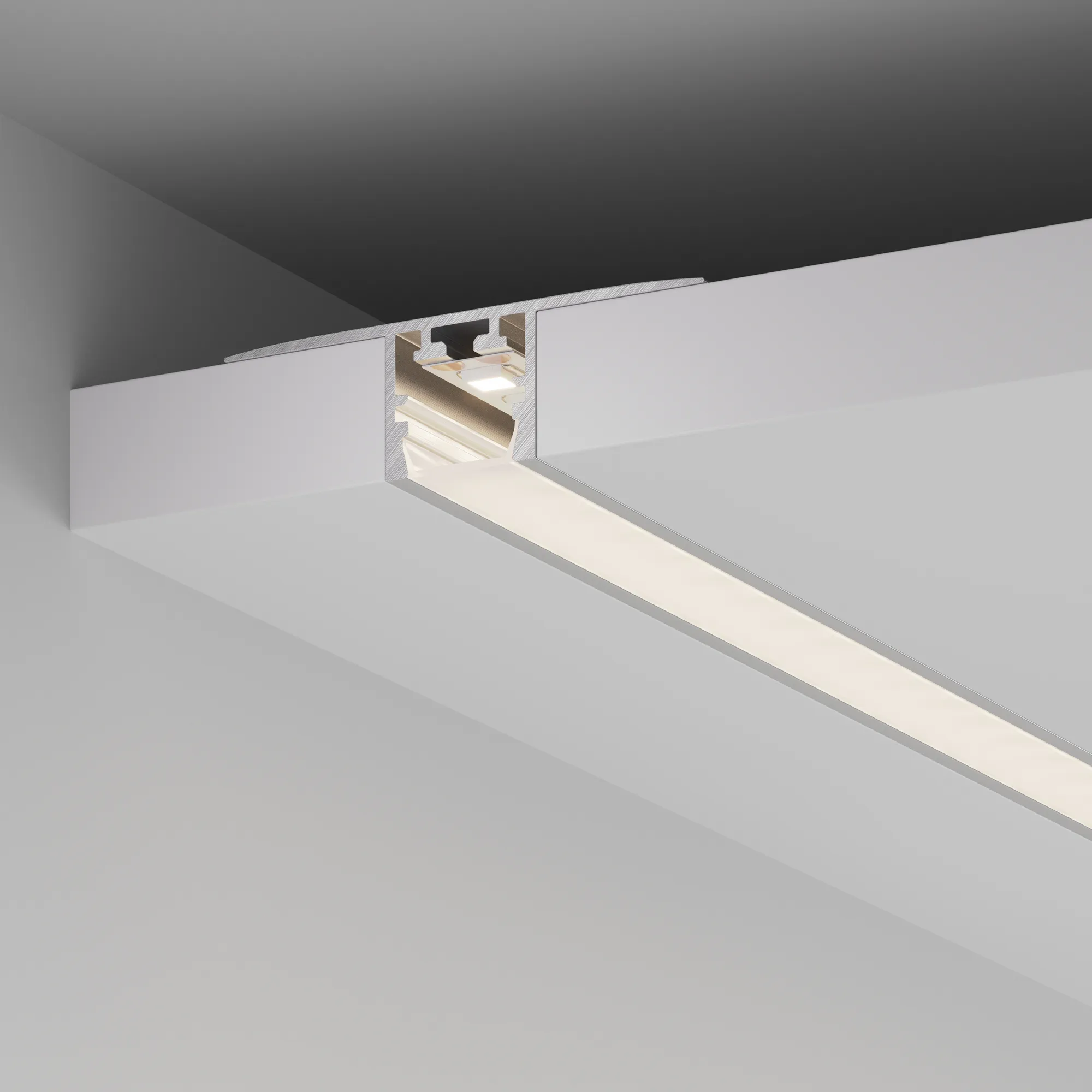 Встраиваемый профиль со скрытым фланцем из анодированного алюминия для контурной подсветки. Совместим с накладным профилем 035020.