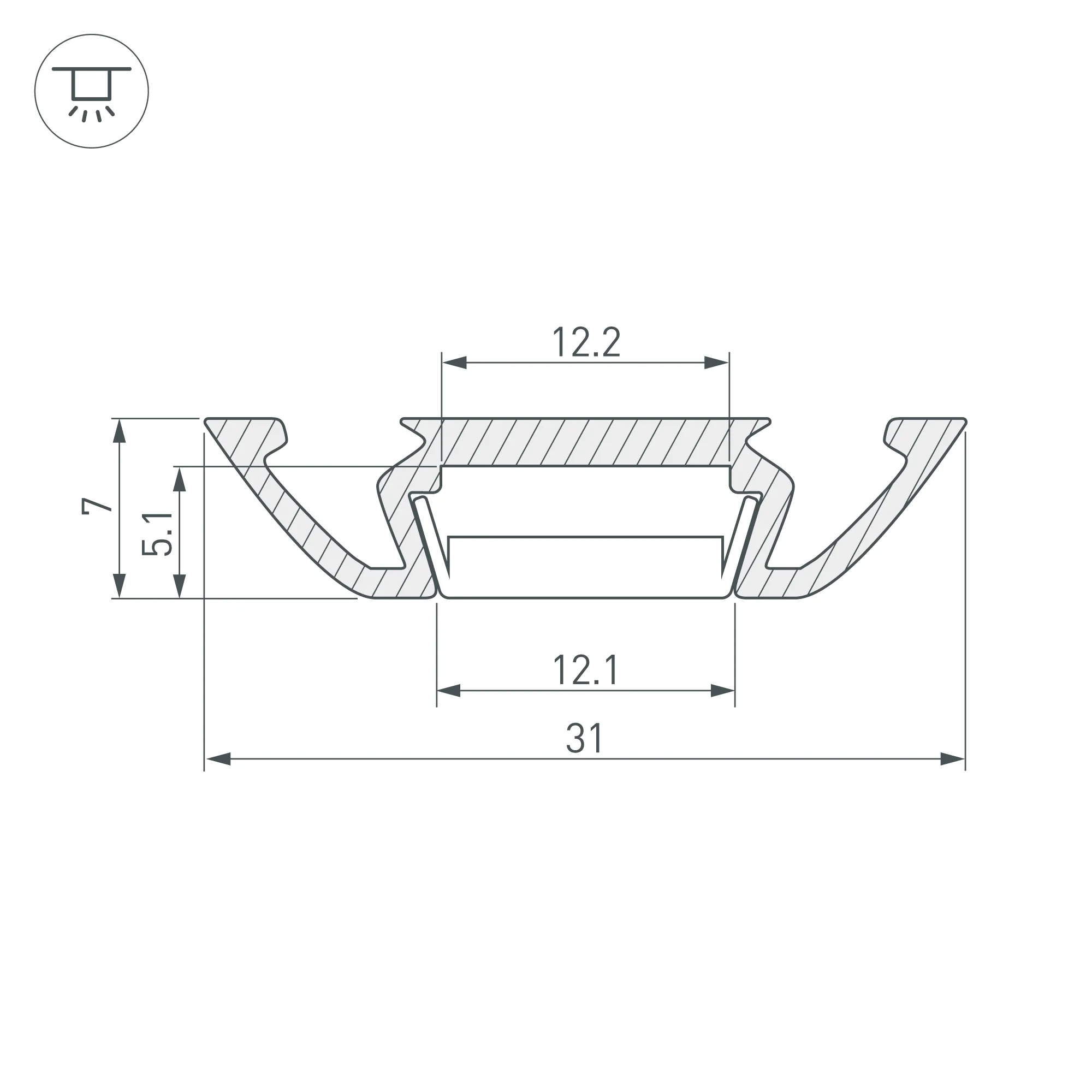 Накладной профиль с фланцем из анодированного алюминия для контурной подсветки. Габаритные размеры профиля составляют 2000 мм в длину, 31 мм в ширину и 7 мм в высоту. Площадка для установки светодиодных лент позволяет использовать ленту шириной до 12,2 мм и мощностью до 17 Вт/м. Это обеспечивает гибкость в выборе светодиодных лент и создает потрясающие световые решения.