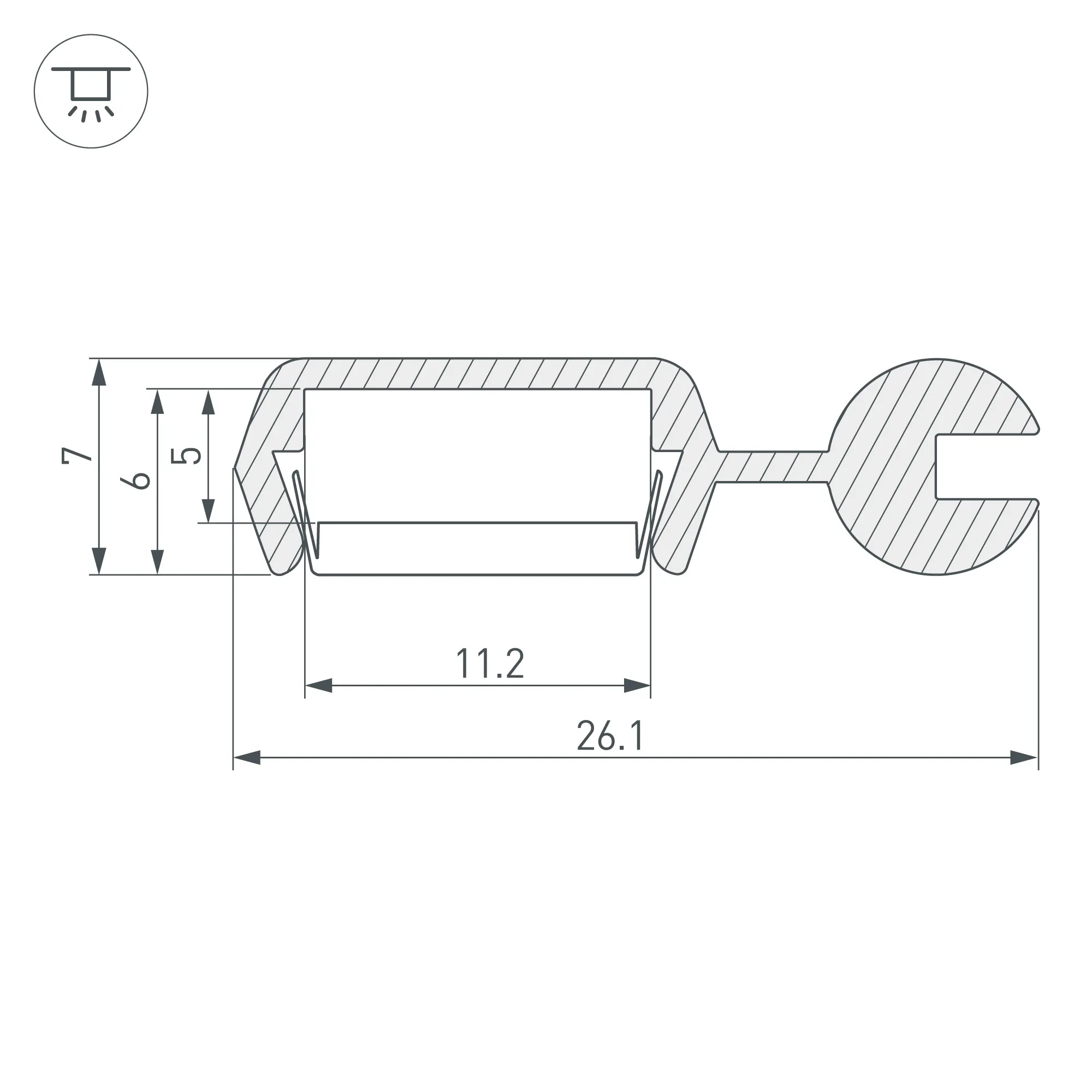 Накладной профиль из анодированного алюминия с возможностью наклона оси света до 90° для подсветки мебели, ниш и других элементов интерьера. Габаритные размеры профиля составляют 2000 мм в длину, 26 мм в ширину и 7 мм в высоту. Площадка для установки светодиодных лент позволяет использовать ленту шириной до 11 мм и мощностью до 17,3 Вт/м. Это обеспечивает гибкость в выборе светодиодных лент и создает потрясающие световые решения.