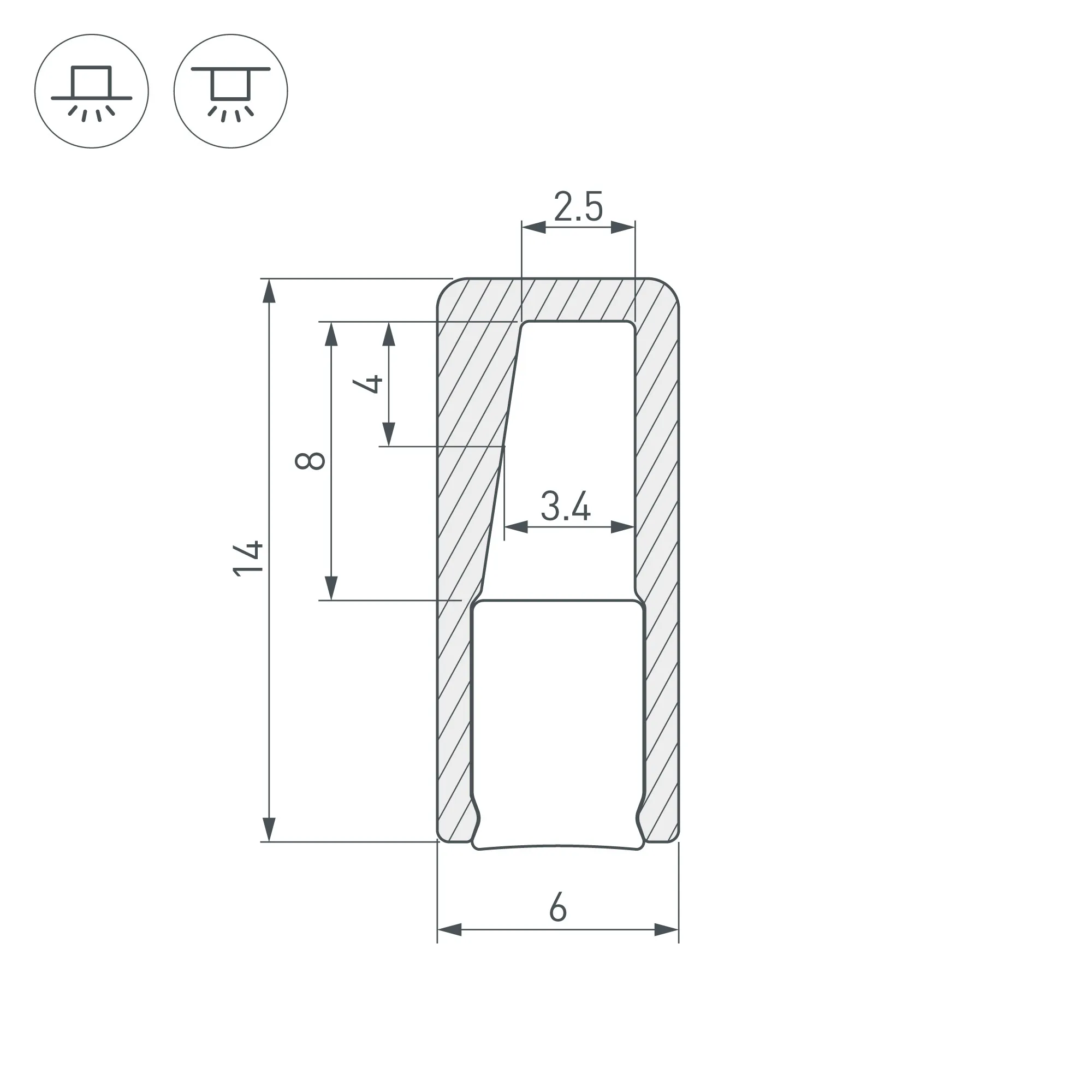 Габаритные размеры профиля составляют 2000 мм в длину, 6 мм в ширину и 14 мм в высоту. Площадка для установки светодиодных лент позволяет использовать ленту шириной до 8 мм и мощностью до 10 Вт/м. Это обеспечивает гибкость в выборе светодиодных лент и создает потрясающие световые решения.