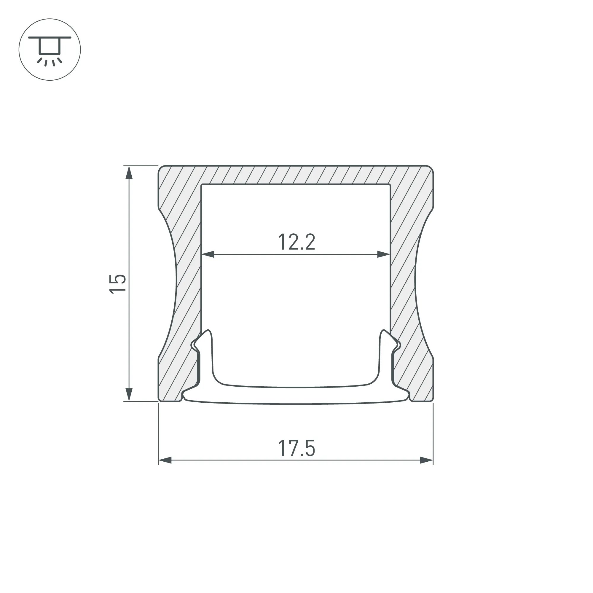 Габаритные размеры профиля составляют 2000 мм в длину, 17,5 мм в ширину и 15 мм в высоту. Площадка для установки светодиодных лент позволяет использовать ленту шириной до 12,2 мм и мощностью до 17,5 Вт/м. Это обеспечивает гибкость в выборе светодиодных лент и создает потрясающие световые решения.