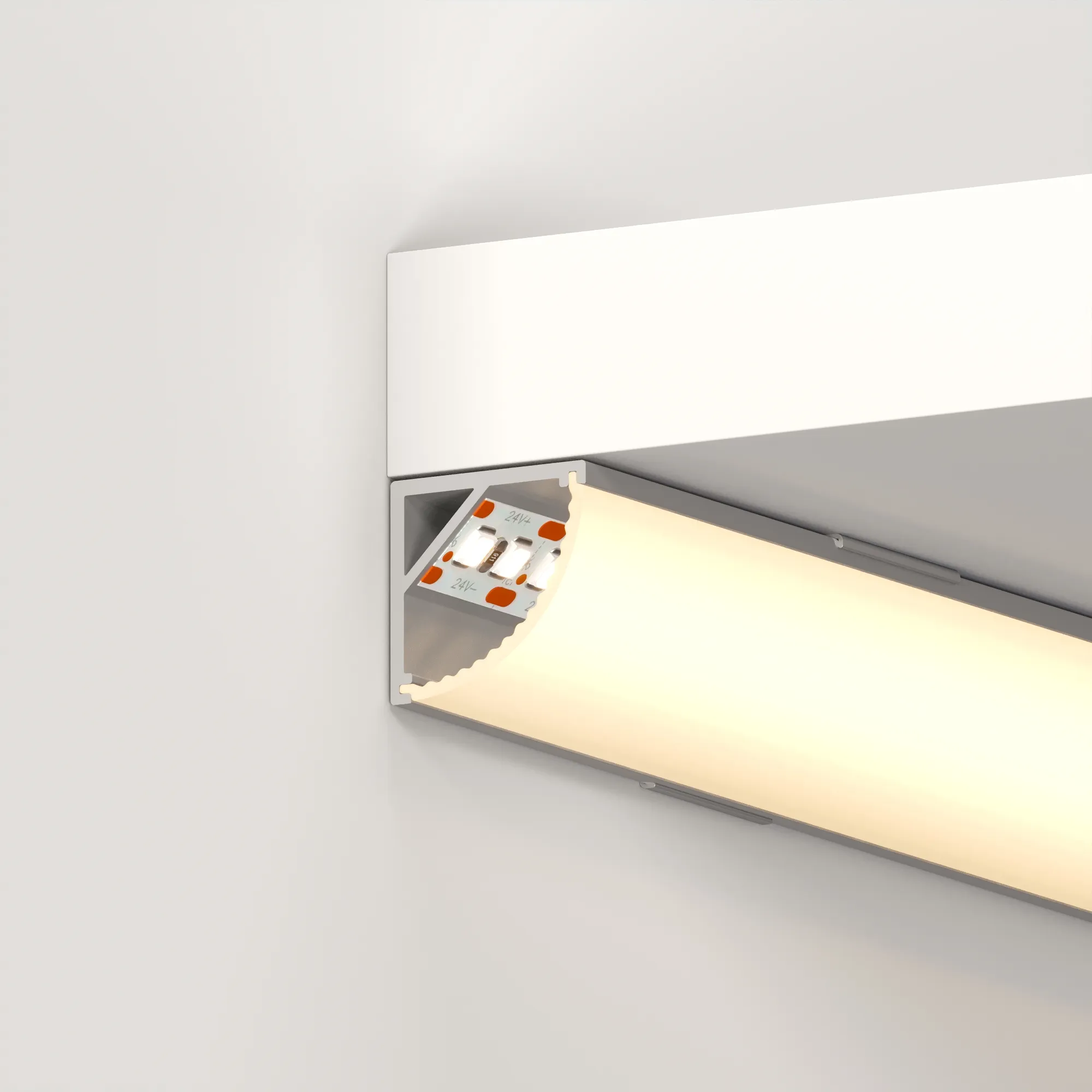 Угловой профиль из анодированного алюминия для подсветки мебели, ниш и других элементов интерьера в комплекте с матовым рассеивателем из поликарбоната со светопропусканием 74%, заглушками (2 шт.) и держателями (2 шт.). Габаритные размеры профиля составляют 2000 мм в длину, 16 мм в ширину и 16 мм в высоту. Площадка для установки светодиодных лент позволяет использовать ленту шириной до 10 мм и мощностью до 14,4 Вт/м. Это обеспечивает гибкость в выборе светодиодных лент и создает потрясающие световые решения.
