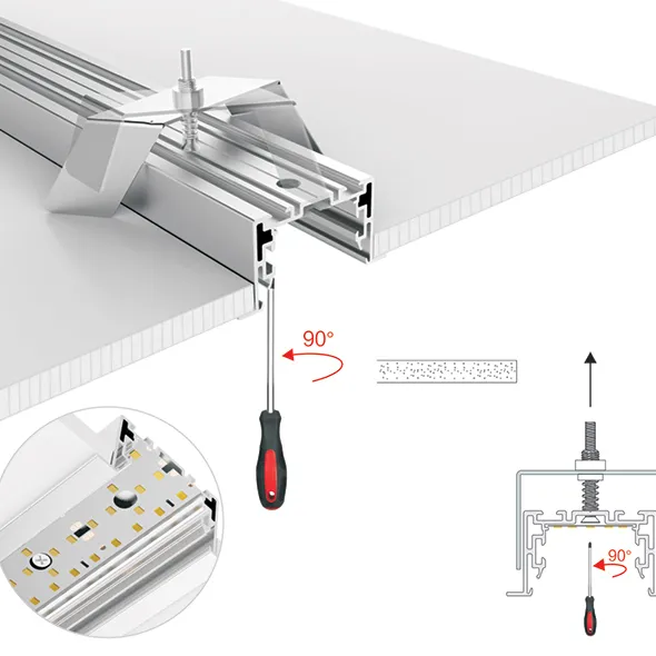 Встраиваемый профиль из анодированного алюминия с накладным фланцем в комплекте с матовым рассеивателем из поликарбоната со светопропусканием 85% идеально подходит для основного освещения и контурной подсветки.