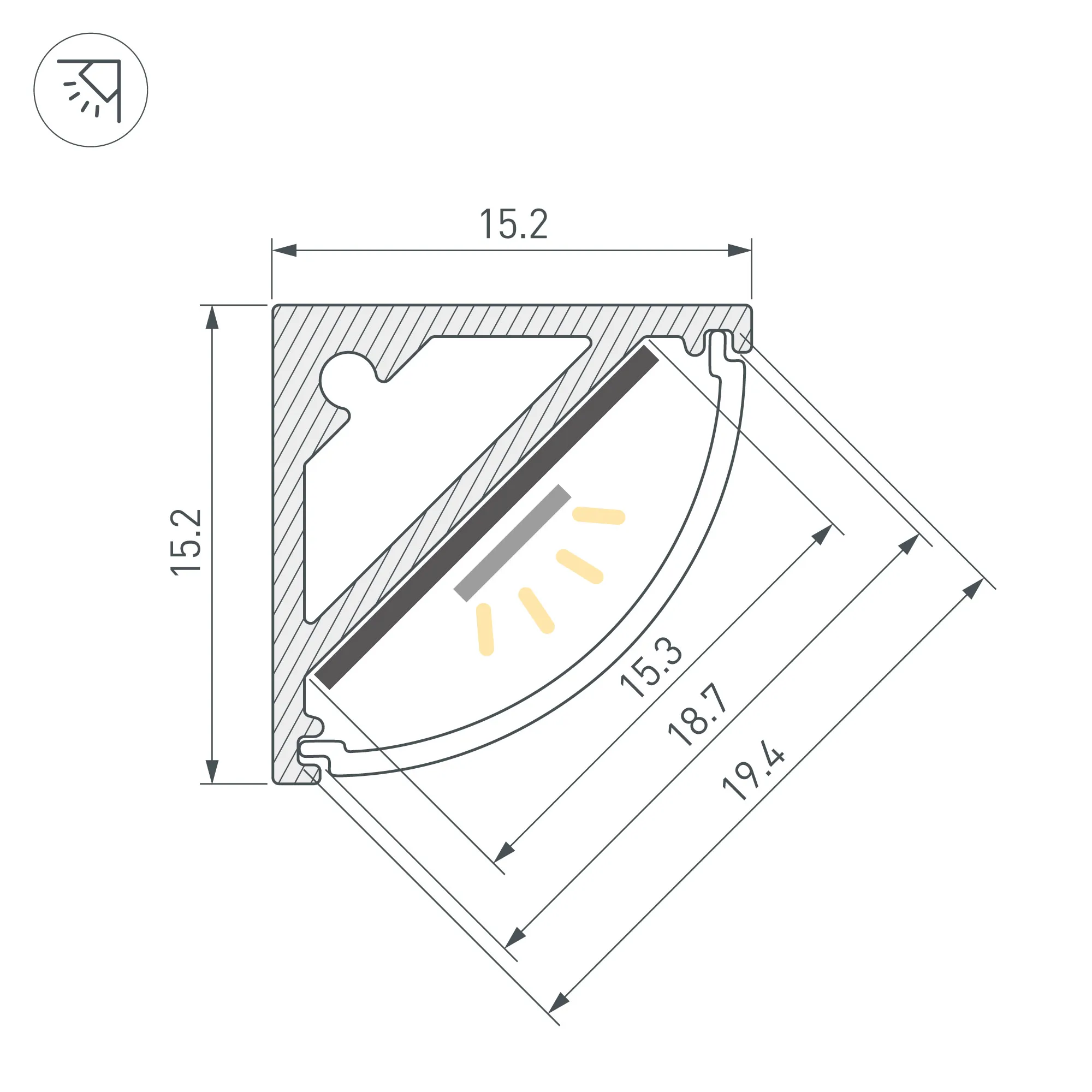 Алюминиевый анодированный светотехнический профиль угловой формы специально предназначен для установки светодиодных лент или линеек. Длина 3000 мм, сечение 15,2х15,2 мм. Профиль применяется для создания декоративного освещения в интерьерах. Монтаж осуществляется накладным способом с помощью специальных держателей. Предлагаются дополнительные аксессуары (экраны, заглушки и т.д.), позволяющие создать готовый светильник.