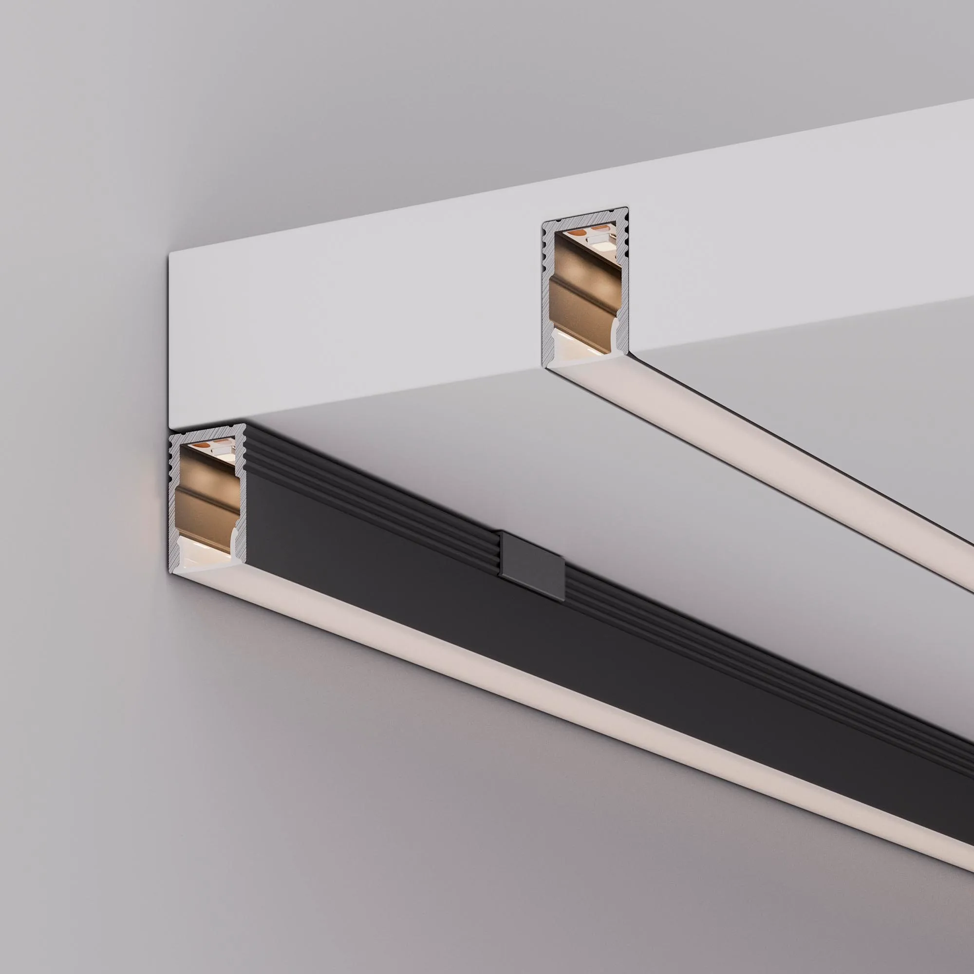 Накладной микро-профиль черного цвета из алюминия для подсветки мебели, пазов, ниш и других элементов интерьера. Габаритные размеры профиля составляют 2000 мм в длину, 8 мм в ширину и 12 мм в высоту. Площадка для установки светодиодных лент позволяет использовать ленту шириной до 5 мм и мощностью до 11 Вт/м. Это обеспечивает гибкость в выборе светодиодных лент и создает потрясающие световые решения.