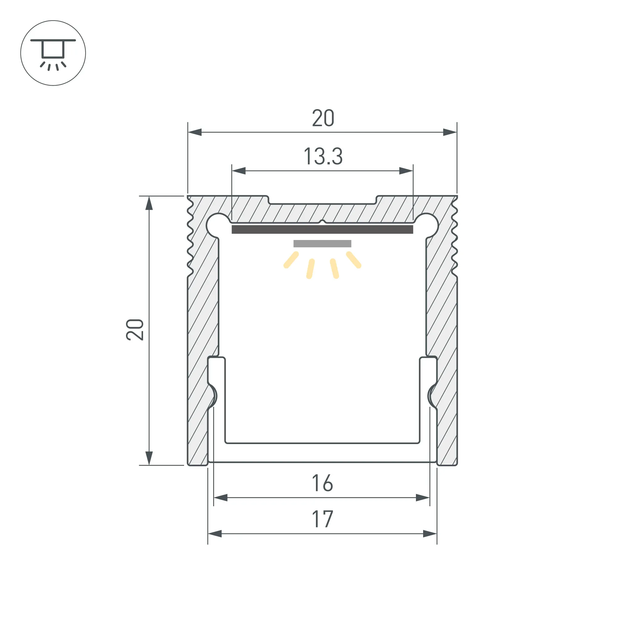 Профиль охлаждает светодиодную ленту, продлевая срок её службы и сохраняя яркость, а также защищает от воздействия пыли, влаги и других внешних факторов. Высококачественное анодированное покрытие защищает профиль от внешних воздействий и коррозии.
