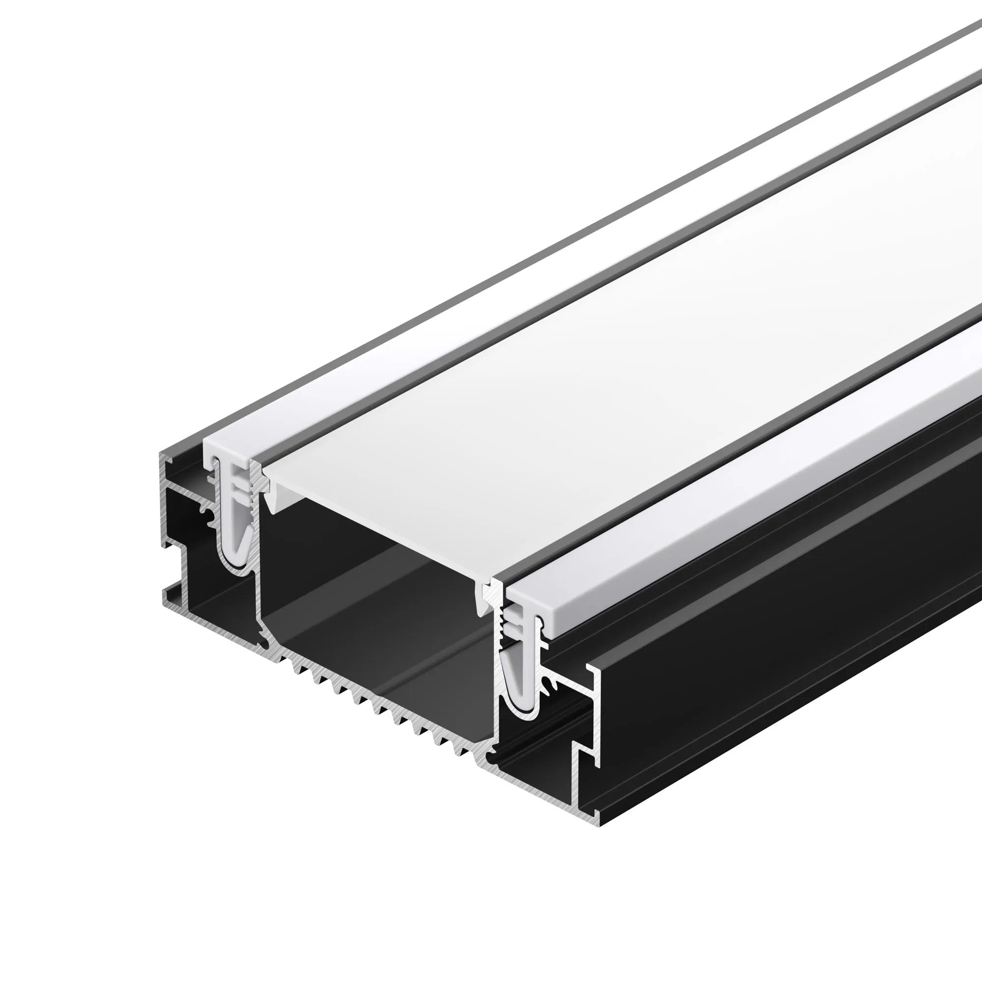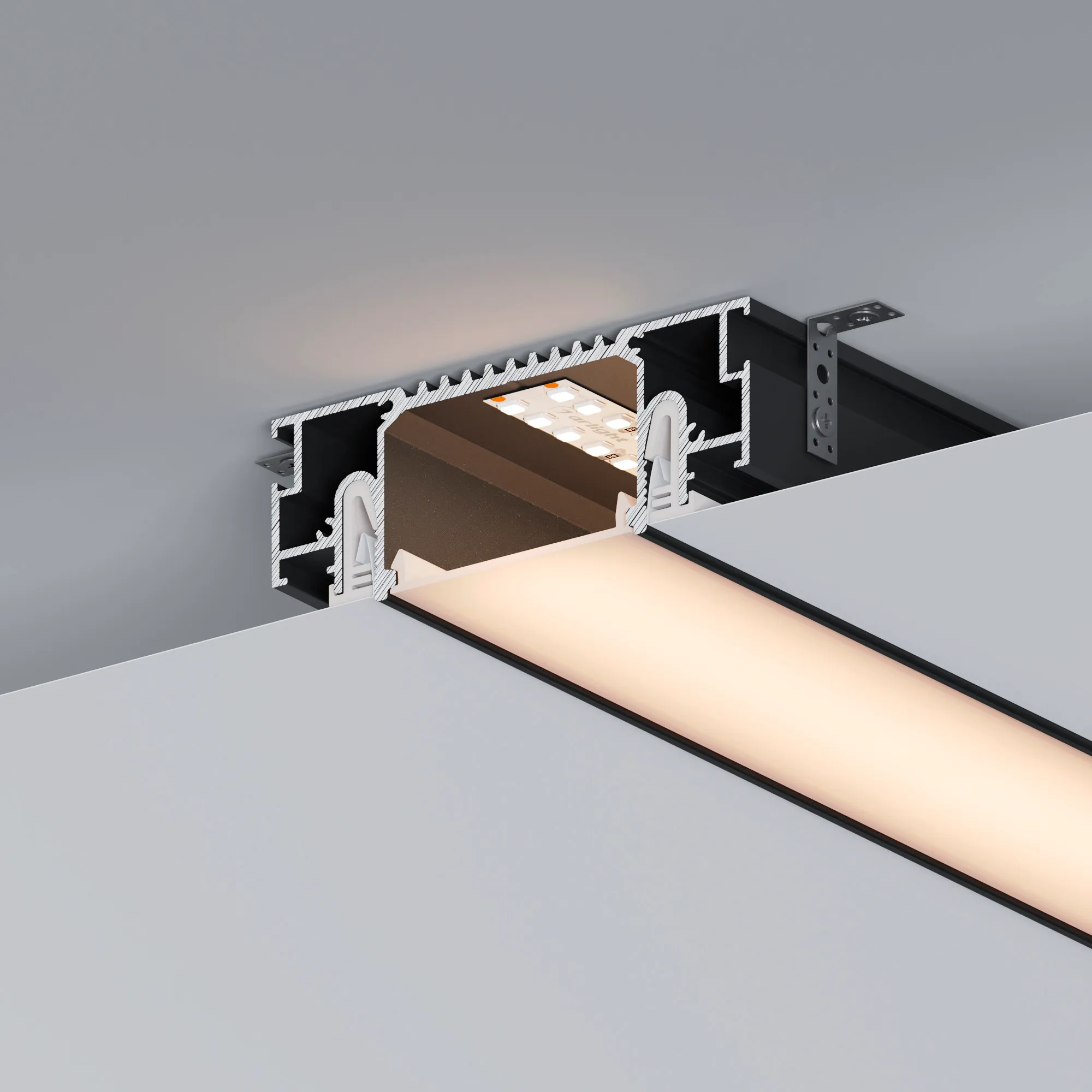 Встраиваемый алюминиевый профиль черного цвета (центральная линия) для дизайнерских решений «линии света» в натяжных потолках. Решение 2-в-1: служит каркасом для крепления натяжного потолка и профилем для установки светодиодной ленты. Подходит для тканевых и ПВХ потолков.