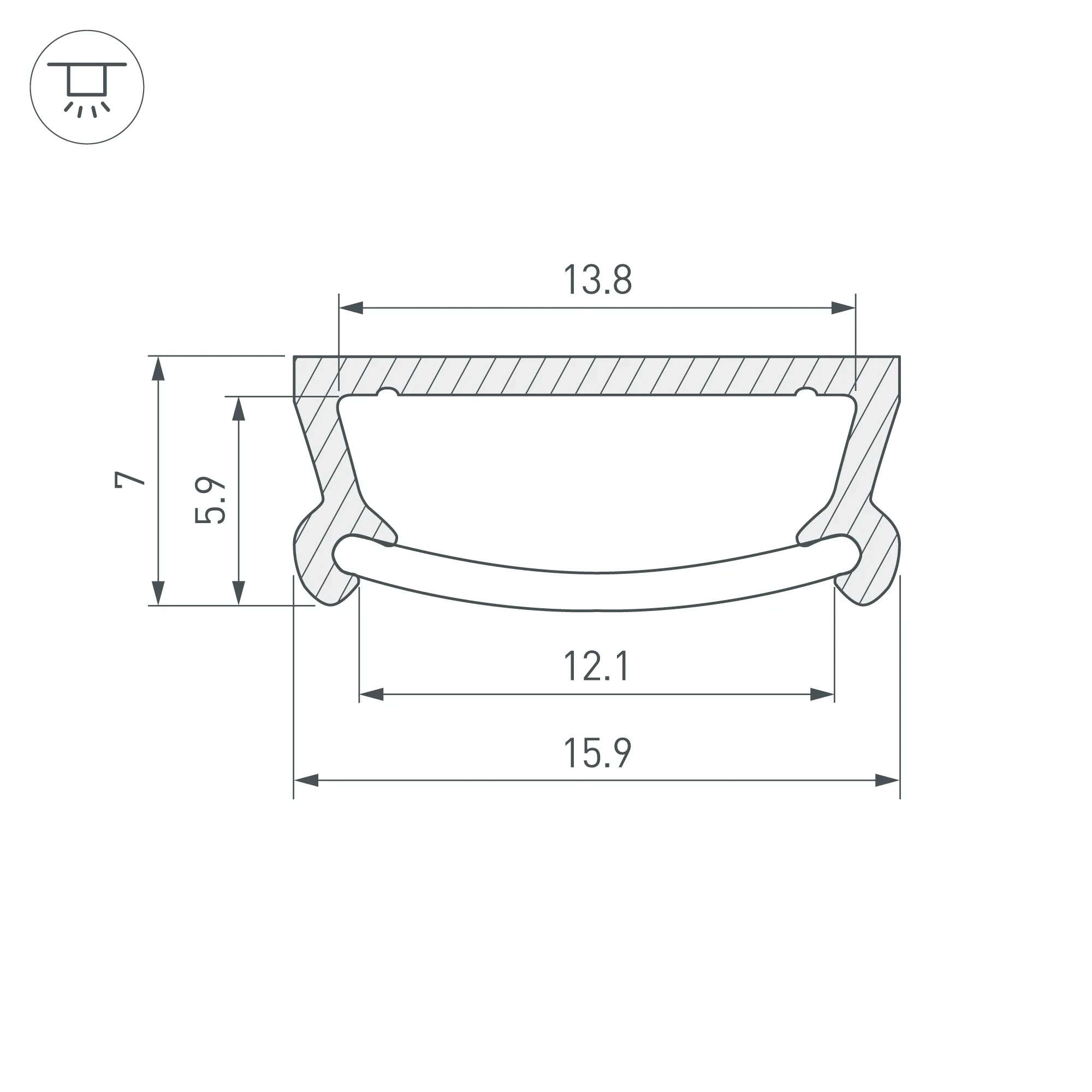 Накладной профиль из анодированного алюминия для контурной подсветки. Габаритные размеры профиля составляют 2000 мм в длину, 15,9 мм в ширину и 7 мм в высоту. Площадка для установки светодиодных лент позволяет использовать ленту шириной до 13,8 мм и мощностью до 12 Вт/м. Это обеспечивает гибкость в выборе светодиодных лент и создает потрясающие световые решения.