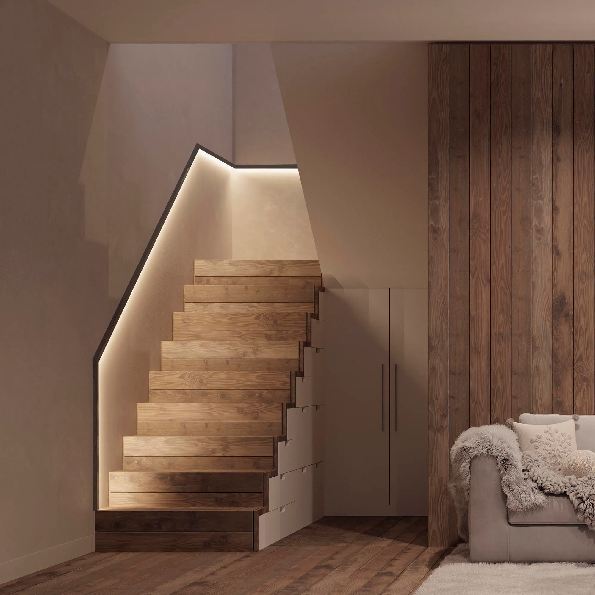 Накладной настенный профиль из анодированного алюминия черного цвета с односторонним свечением для создания эффекта «отраженного света» идеально подходит для подсветки стен.