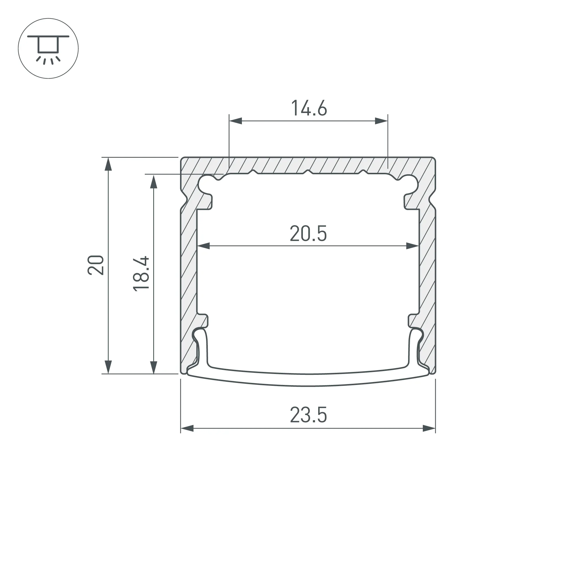 Накладной профильиз алюминия для основной и контурной подсветки помещений. Габаритные размеры профиля составляют 2000 мм в длину, 23,5 мм в ширину и 20 мм в высоту. Площадка для установки светодиодных лент позволяет использовать ленту шириной до 14,6 мм. Это обеспечивает гибкость в выборе светодиодных лент и создает потрясающие световые решения.