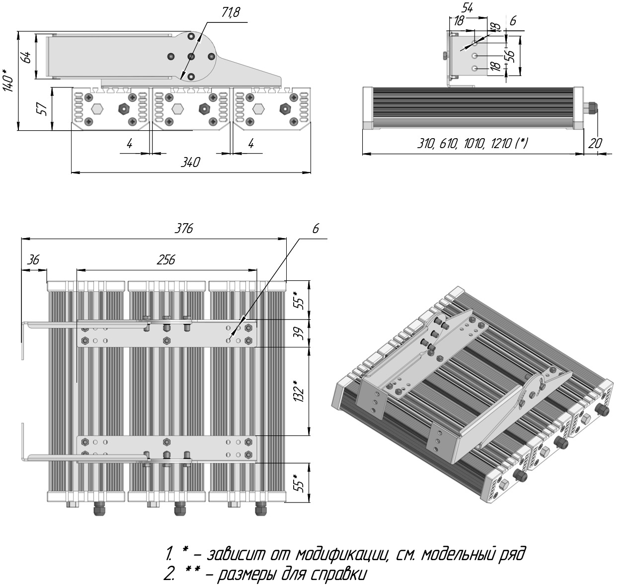 гибкие варианты монтажа — Г-образная скоба, консольное крепление, а также дополнительные типы аксессуаров для подвесного, накладного и настенного способа установки ламп.