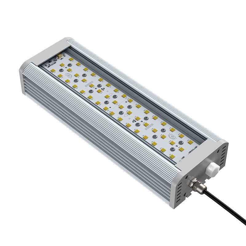 степень защиты IP65 (и IP67) — корпус светильника и место ввода кабеля герметичны и защищены как от попадания брызг воды при уличном монтаже, так и от высокой запыленности на производстве. Дополнительно в корпусе предусмотрен «дышащий» клапан, защищающий схемотехнику от образования конденсата из-за перепадов окружающей температуры.