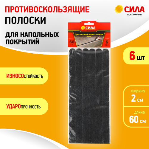 Оптимальный размер под размер ступни 60 см. Количество полосок в упаковке 6 штук. Перед нанесением противоскользящих полосок поверхность, на которую они будут наноситься, необходимо почистить и просушить, обязательно обезжирить спиртом или растворителем. Далее необходимо удалить защитную подложку с клеящего слоя и крепко прижать полоску к поверхности.
