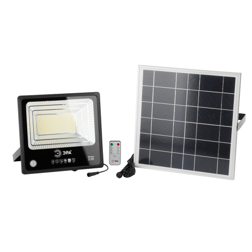 Cветодиодный уличный прожектор ЭРА ERAPRO-150 на солнечной батарее надёжно защищён от влаги и пыли (IP65) и отлично работает в широком температурном диапазоне (от - 20 до + 50 градусов). Оснащен морозоустойчивым сменным аккумулятором Li-FePO4. Солнечная панель в комплекте. Прибор полностью заряжается от света за 8 часов. В прожекторе установлены яркие экономичные LED элементы последнего поколения, 350 светодиодов. Модель оснащена встроенным датчиком движения: освещение будет включено только в тот период, когда рядом находятся люди. Время до перехода в дежурный режим - 30 секунд. Датчик движения можно отключать, если для вас он неактуален, и снова включать, если опция понадобилась. В комплекте поставляется пульт дистанционного управления, который позволяет на расстоянии включать и выключать свет, отключать датчик движения, устанавливать таймер работы, регулировать яркость. Светодиодный прожектор ERAPRO-150 от компании ЭРА гарантирует качественную подсветку вашего участка!