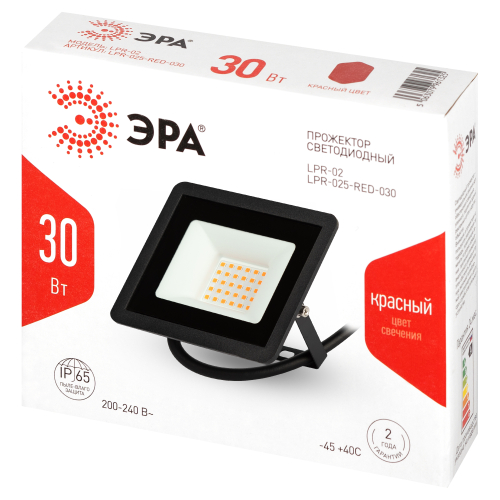 Уличный LED-прожектор с красным свечением. Мощность — 30 Вт. Удачное решение для эффектной архитектурной подсветки фасадов, а также оформления деревьев, парковых зон, рекламных стендов, щитов и витрин. Прочный корпус из литого алюминия с порошковым покрытием, защитное калёное стекло, высокая степень пылевлагозащиты — IP65. Рассчитан на работу в широком диапазоне температур: полностью сохраняет технические свойства и при –45, и при +40 °C.