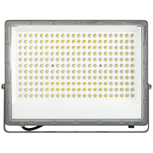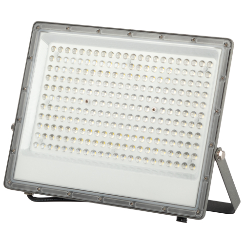 Прожектор светодиодный уличный с высоким световым потоком. Корпус -серый, изготовлен из прочного алюминия, имеет рассеиватель из поликарбоната с интегрированными линзами, имеет клапан выравнивания давления. Устойчив к механическим воздействиям, защищен от дождя и пыли, работает при широком диапазоне температур. Отличается простой и быстрой установкой: есть кронштейн специальной формы и регулировочные болты для выбора направления света. Длина кабеля 30см