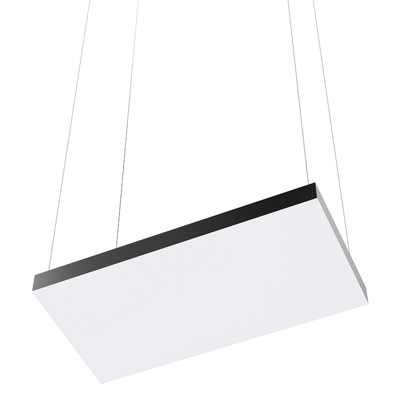 Корпус светильника прямоугольной формы может быть выполнен в черном, белом и сером цветах. Цветовая температура на выбор: теплый цвет (3000К), нейтральный (4000К) или холодный (6500К). Материал корпуса – металл, размеры на выбор. Вариант монтажа – подвесной потолочный.