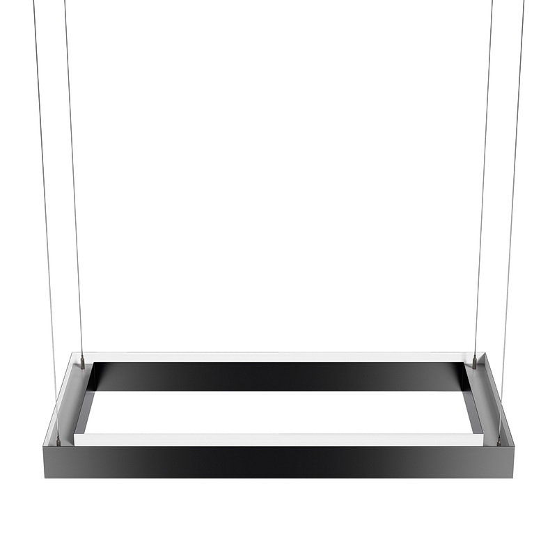 Корпус светильника прямоугольной формы может быть выполнен в черном, белом и сером цветах. Цветовая температура на выбор: теплый цвет (3000К), нейтральный (4000К) или холодный (6500К). Материал корпуса – металл, размеры на выбор. Вариант монтажа – подвесной потолочный.