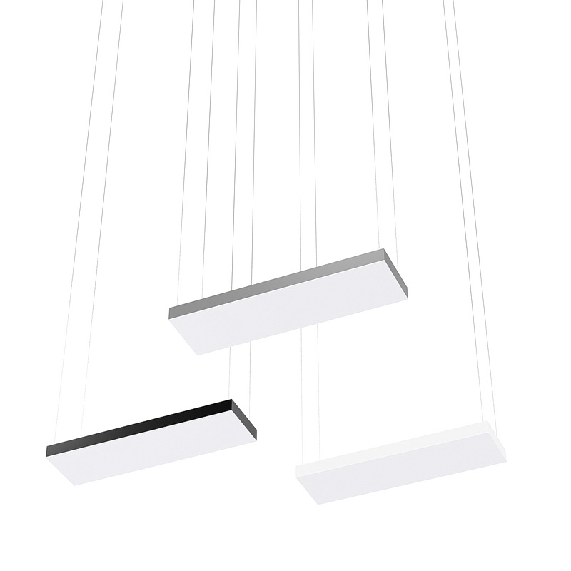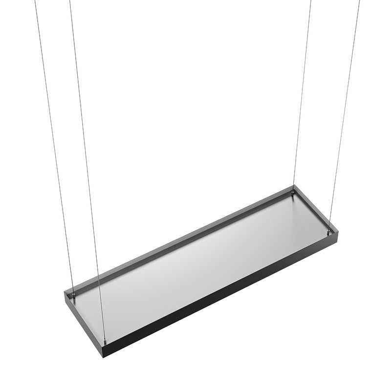 Корпус светильника прямоугольной формы может быть выполнен в черном, белом и сером цветах. Цветовая температура на выбор: теплый цвет (3000К), нейтральный (4000К) или холодный (6500К). Материал корпуса – металл, размеры на выбор. Вариант монтажа – подвесной потолочный.