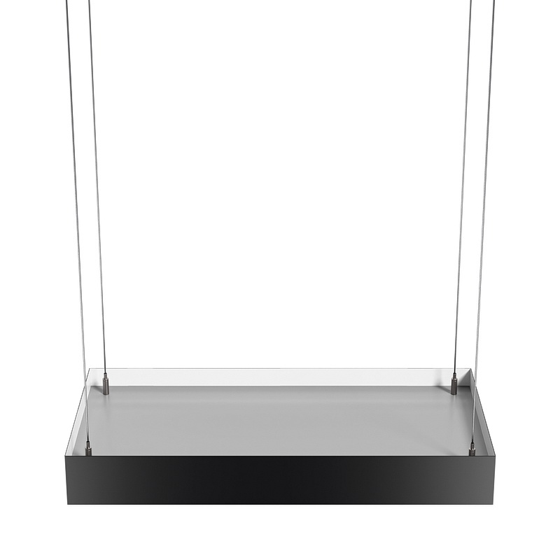 Корпус светильника прямоугольной формы может быть выполнен в черном, белом и сером цветах. Цветовая температура на выбор: теплый цвет (3000К), нейтральный (4000К) или холодный (6500К). Материал корпуса – металл, размеры на выбор. Вариант монтажа – подвесной потолочный.