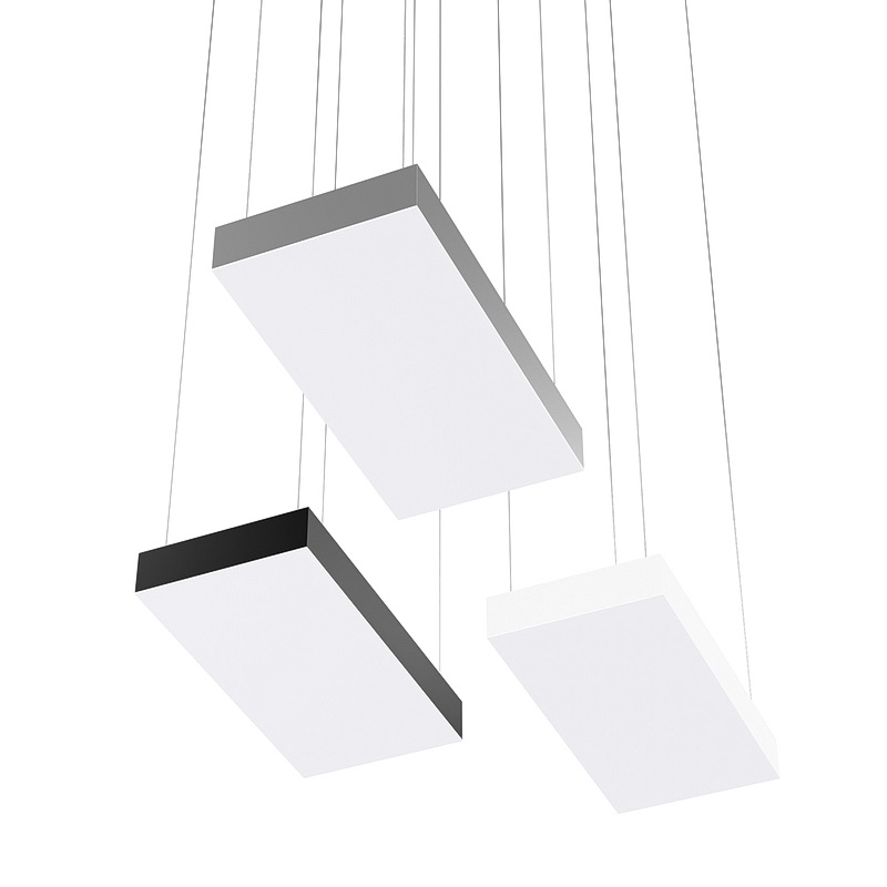 Корпус светильника прямоугольной формы может быть выполнен в черном, белом и сером цветах. Цветовая температура на выбор: теплый цвет (3000К), нейтральный (4000К) или холодный (6500К). Материал корпуса – металл, размеры на выбор. Вариант монтажа – подвесной потолочный.