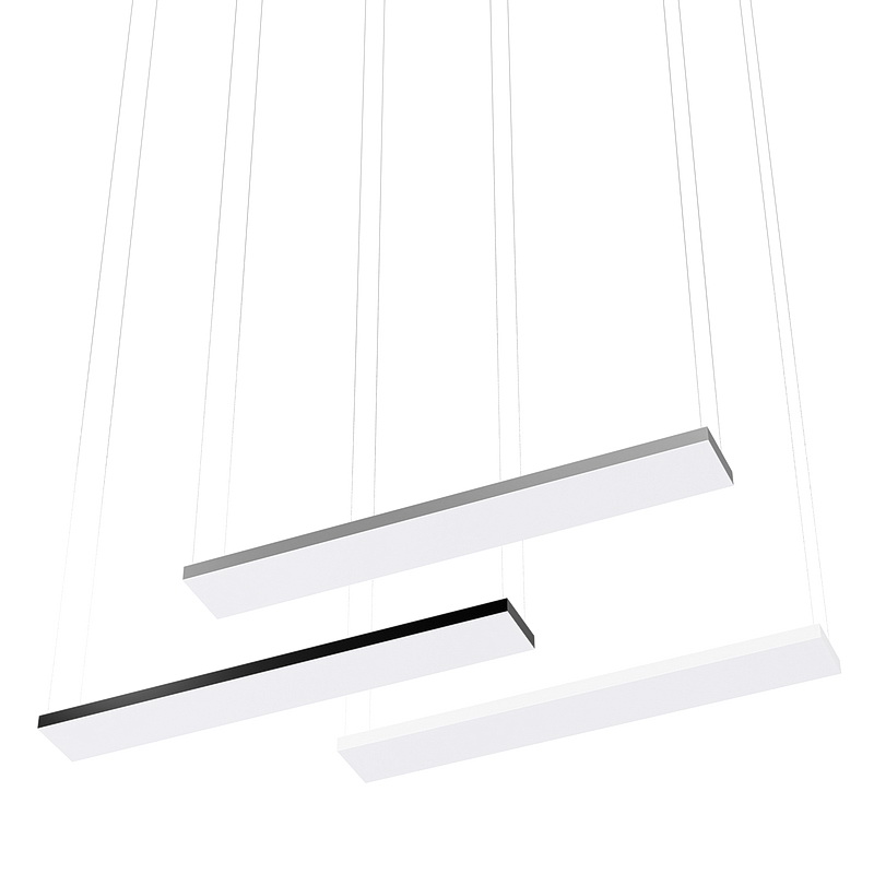 Корпус светильника прямоугольной формы может быть выполнен в черном, белом и сером цветах. Цветовая температура на выбор: теплый цвет (3000К), нейтральный (4000К) или холодный (6500К). Материал корпуса – металл, размеры на выбор. Вариант монтажа – подвесной потолочный.