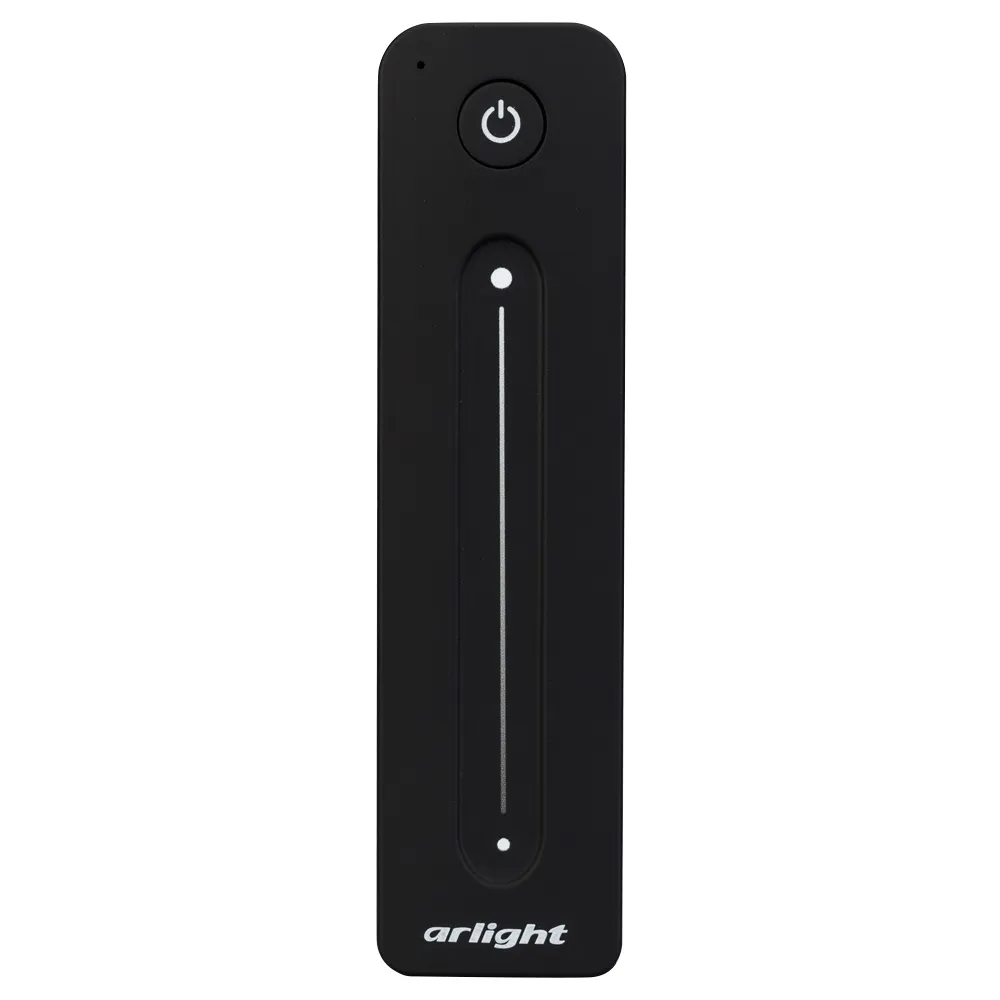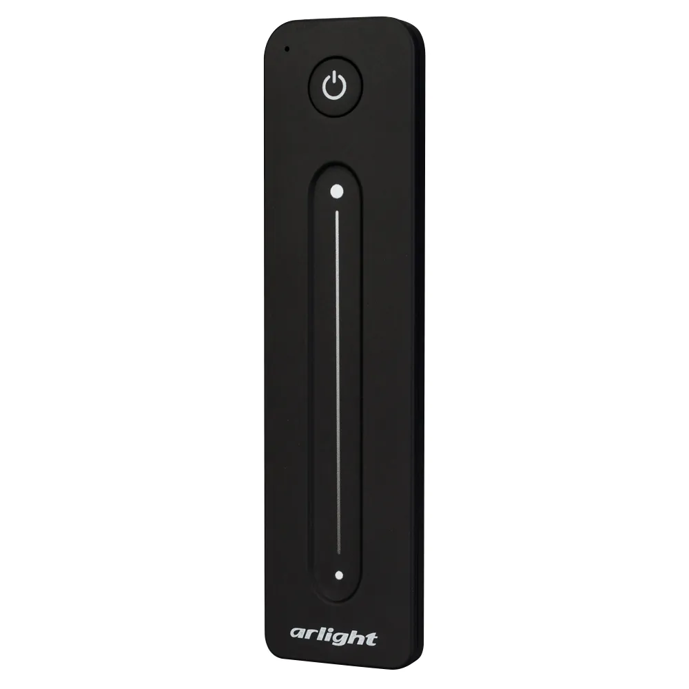 Радиочастотный пульт-слайдер чёрного цвета, предназначенный для управления одноцветными источниками света. Поддерживает основные функции: включение и выключение света, регулировку яркости, управление 1 световой зоной. Устройство совместимо с диммерами и контроллерами серии SMART, поддерживающими управление по радиоканалу 2.4G. К одному пульту возможно привязать неограниченное количество диммеров и контроллеров. Питание 3В осуществляется от батарейки CR2032. Корпус пульта выполнен из пластика с покрытием Soft-Touch. Габариты устройства 139x36x11 мм.