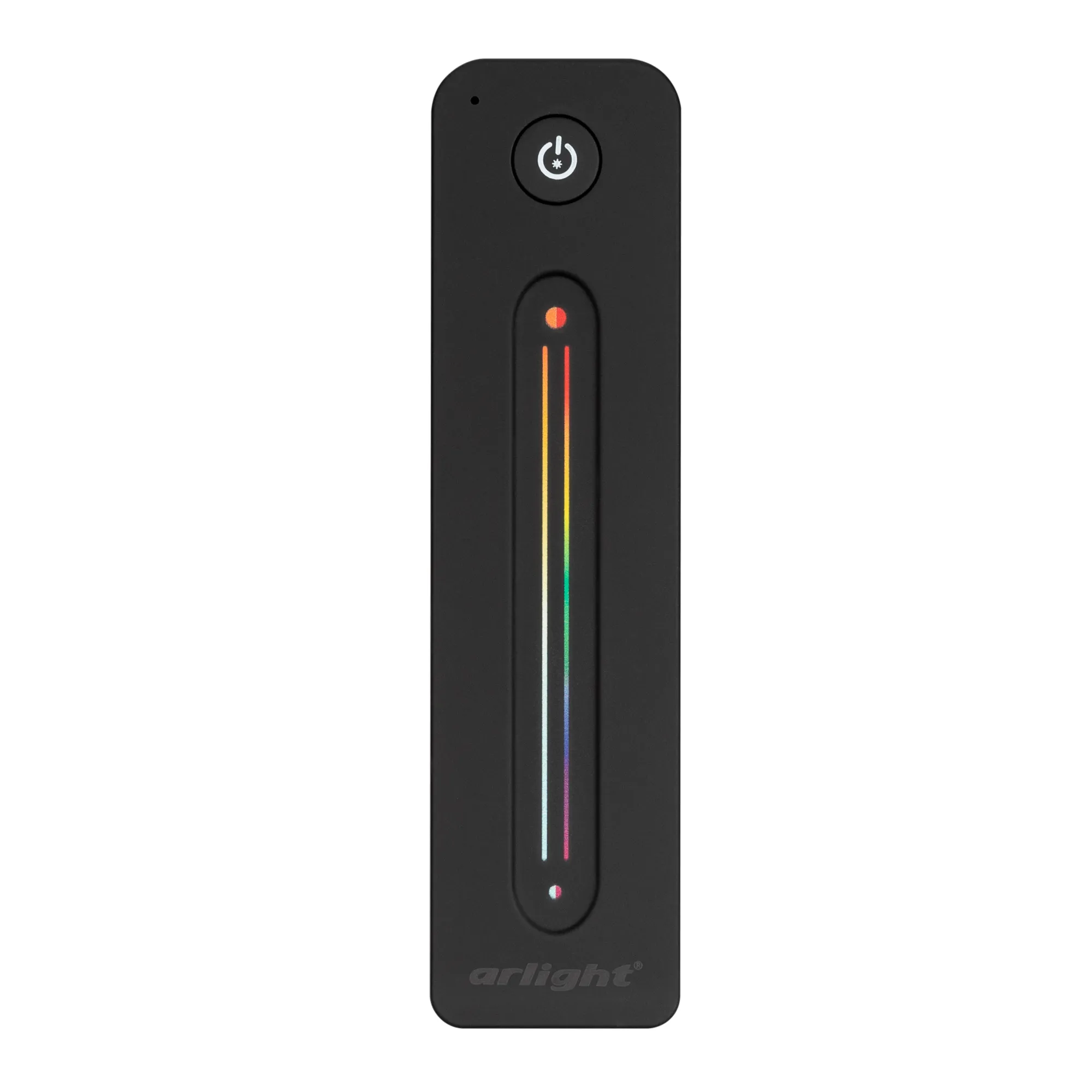 Радиочастотный пульт-слайдер чёрного цвета, предназначенный для управления мультицветными 5-канальными (RGB-MIX) источниками света. Поддерживает основные функции: включение и выключение света, регулировку яркости и цветовой температуры (MIX), управление цветом (RGB). Устройство совместимо с 5-канальными диммерами и контроллерами серии SMART, поддерживающими управление по радиоканалу 2.4G. К одному пульту возможно привязать неограниченное количество диммеров и контроллеров. Питание 3В осуществляется от батарейки CR2032. Корпус пульта выполнен из пластика с покрытием Soft-Touch. Габариты устройства 139x36x11 мм.