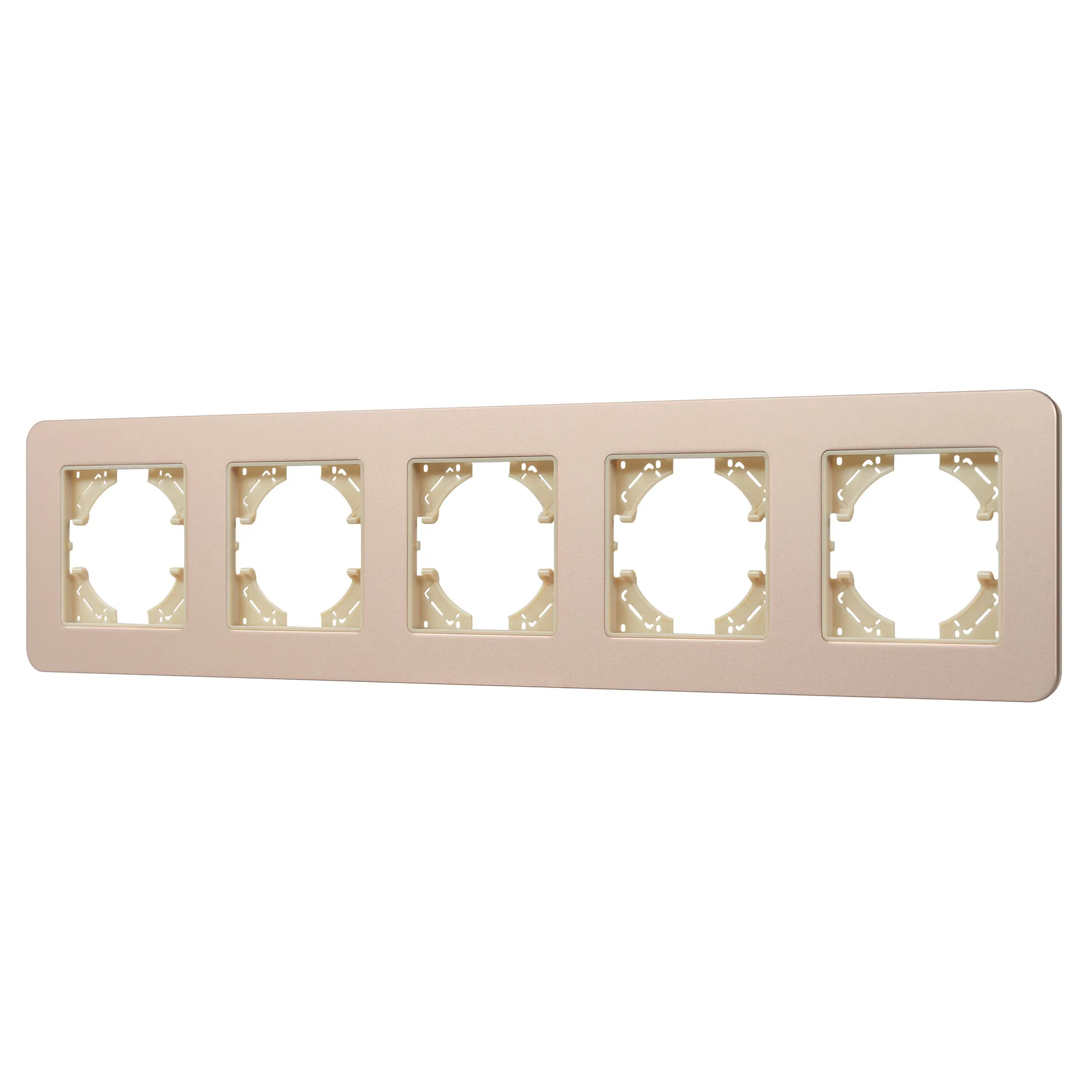 Рамка из серии AKIRY представляет собой комбинацию в виде основы из тугоплавкого пластика и 3-х миллиметровой накладки из алюминиевого сплава. Корпус выполнен в золотом цвете и поверхностью с Soft-Touch покрытием высотой 7мм, что позволяет гармонично встроить в интерьер любого современного дизайн-проекта. Невидимая часть из тугоплавкого пластика, для надежной фиксации механизма. Грани алюминиевой накладки аккуратно обработаны и отшлифованы, чтобы обезопасить пользователя при установке и демонтаже.