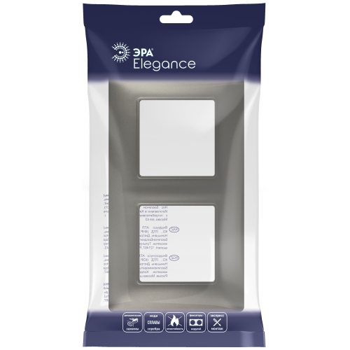 Рамка для выключателей и розеток 2-постовая серии Эра Elegance цвет титан 14-5002-16. Сделана из поликарбоната. Используется только с механизмами серии Эра Elegance.