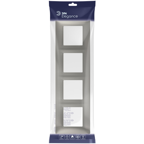 Рамка для выключателей и розеток 4-постовая серии Эра Elegance цвет титан 14-5004-16. Сделана из поликарбоната. Используется только с механизмами серии Эра Elegance.
