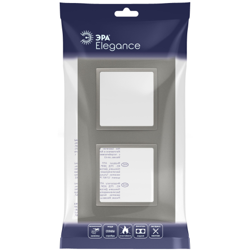 Рамка для выключателей и розеток 2-постовая серии Эра Elegance Classic цвет титан 14-5012-16. Сделана из поликарбоната. Используется только с механизмами серии Эра Elegance. Классический "квадратный" дизайн.