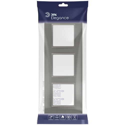 Рамка для выключателей и розеток 3-постовая серии Эра Elegance Classic цвет титан 14-5013-16. Сделана из поликарбоната. Используется только с механизмами серии Эра Elegance. Классический "квадратный" дизайн.