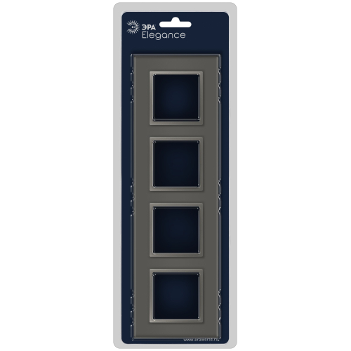 Рамка для выключателей и розеток 4-постовая серии Эра Elegance цвет титан 14-5104-16. Сделана из стекла. Используется только с механизмами серии Эра Elegance