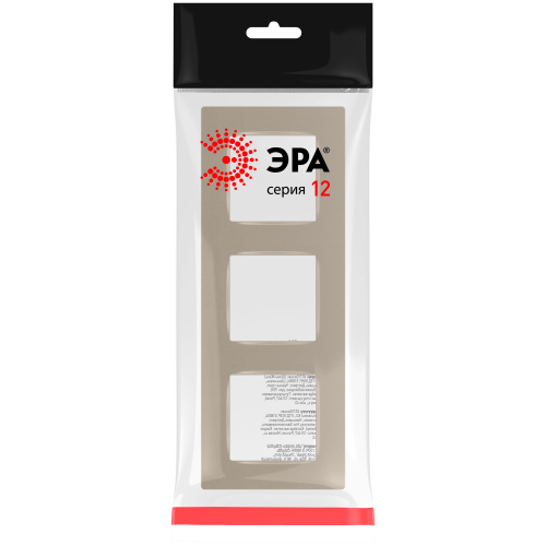 Рамка для розеток и выключателей ЭРА 12 12-5203-04 на 3 поста, Классик, цвет шампань. Обновленный дизайн. Рамка может быть установлена как горизонтально, так и вертикально. Размер 229х85х9мм.