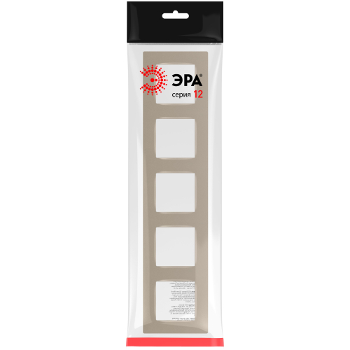Рамка для розеток и выключателей ЭРА 12 12-5205-04 на 5 постов, Классик, цвет шампань. Обновленный дизайн. Рамка может быть установлена как горизонтально, так и вертикально. Размер 373х85х9мм.