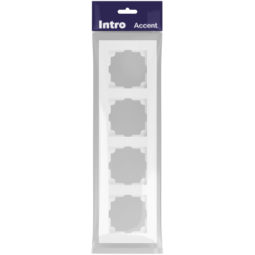 Рамка для розеток и выключателей 4-постовая универсальная пластик серии Intro Accent цвет белый матовый 6-504-01М. Рамка выполнена из термопласта. Устанавливается на 4 устройства серии Intro Accent, смонтированных в подрозетники.