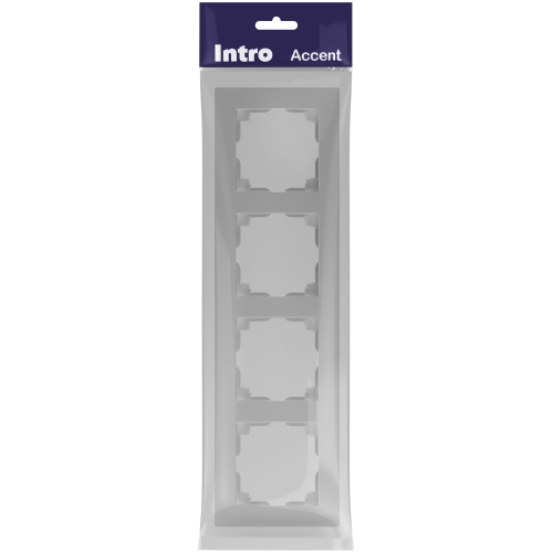 Рамка для розеток и выключателей 4-постовая универсальная пластик серии Intro Accent цвет алюминий 6-504-03. Рамка выполнена из термопласта. Устанавливается на 4 устройства серии Intro Accent, смонтированных в подрозетники.