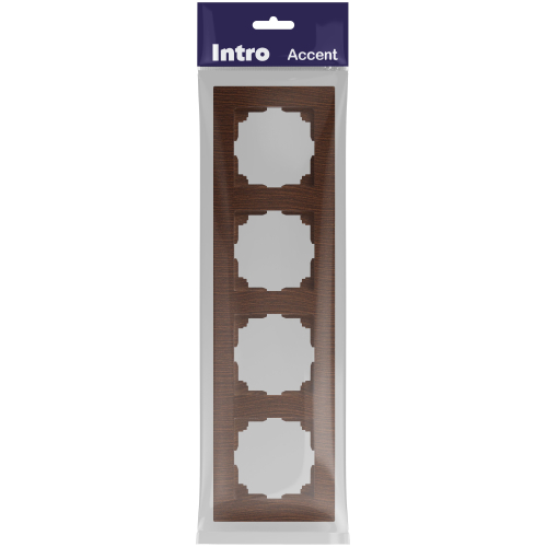 Рамка для розеток и выключателей 4-постовая универсальная пластик серии Intro Accent цвет венге 6-504-10. Рамка выполнена из термопласта. Устанавливается на 4 устройства серии Intro Accent, смонтированных в подрозетники.