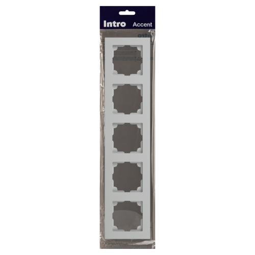 Рамка для розеток и выключателей 5-постовая универсальная пластик серии Intro Accent цвет белый 6-505-01. Рамка выполнена из термопласта. Устанавливается на 5 устройств серии Intro Accent, смонтированных в подрозетники.