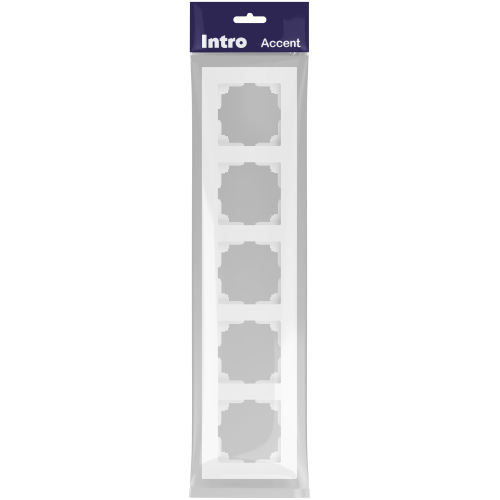 Рамка для розеток и выключателей 5-постовая универсальная пластик серии Intro Accent цвет белый матовый 6-505-01М. Рамка выполнена из термопласта. Устанавливается на 5 устройств серии Intro Accent, смонтированных в подрозетники.