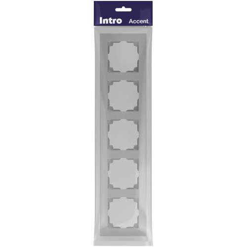 Рамка для розеток и выключателей 5-постовая универсальная пластик серии Intro Accent цвет алюминий 6-505-03. Рамка выполнена из термопласта. Устанавливается на 5 устройств серии Intro Accent, смонтированных в подрозетники.