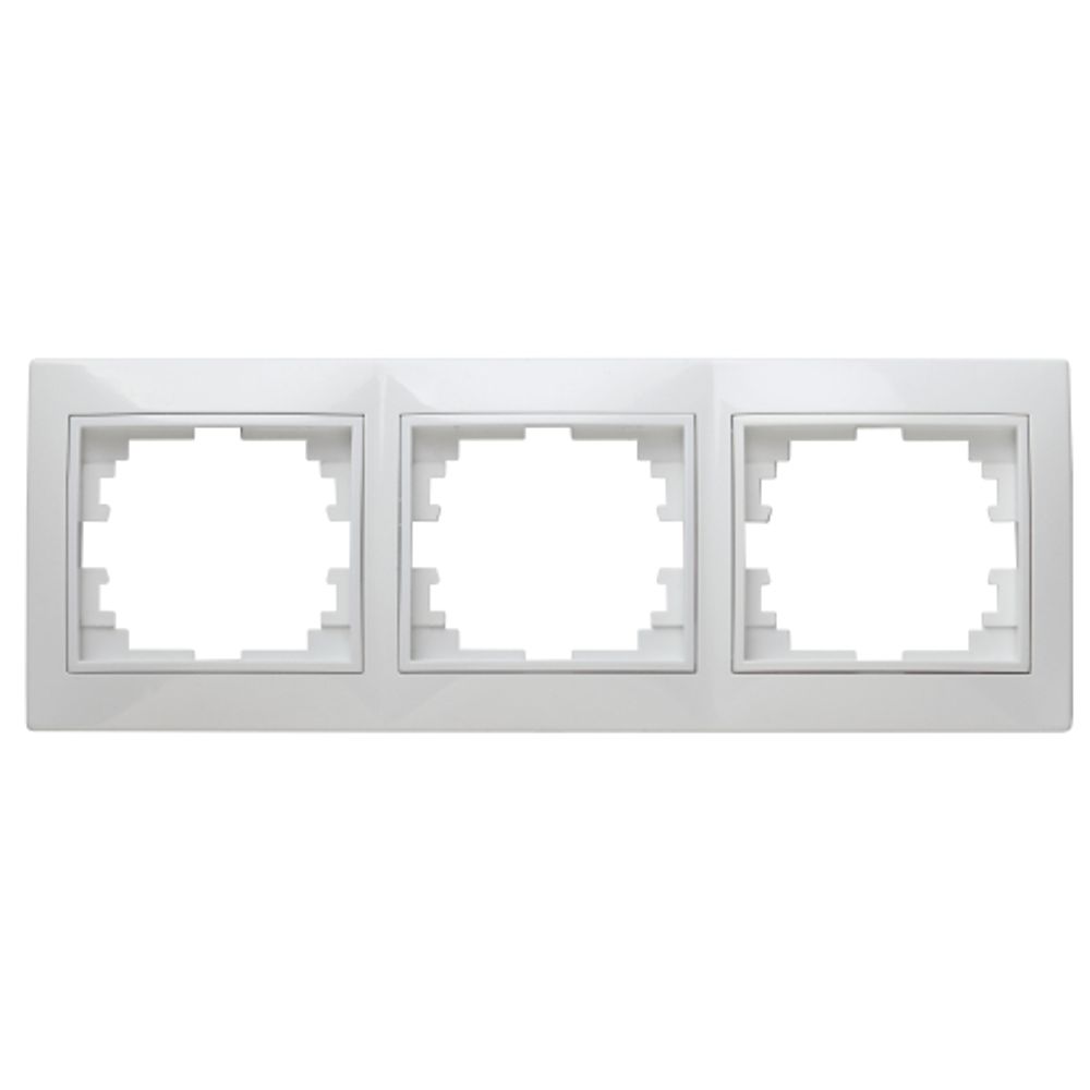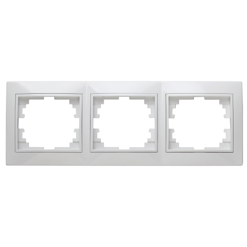 Рамка выполнена из термопласта. Устанавливается на 3 устройства серии Intro Plano, смонтированные в два горизонтально установленных подрозетника.