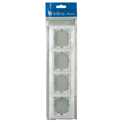 Рамка выполнена из термопласта. Устанавливается на 4 устройства серии Intro Plano, смонтированные в два горизонтально установленных подрозетника.