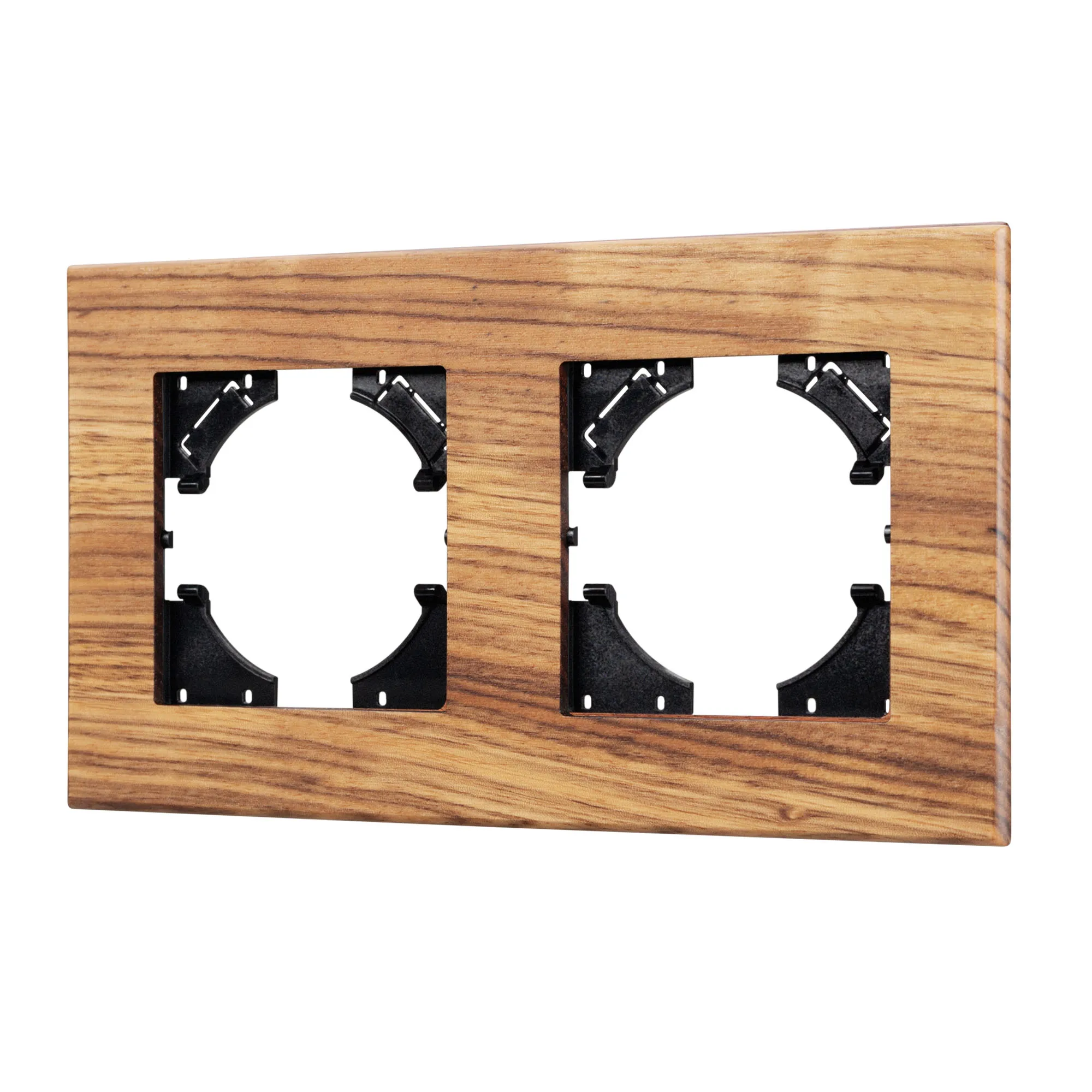 Рамка из серии XSILO изготовлена из комбинации высококачественного пластика и натурального дерева. Корпус выполнен в черном цвете с накладкой из лакированного дерева. Высота изделия в таком случае составляет 7 мм, что позволяет гармонично разместить в интерьер любого современного дизайн-проекта. Предназначена под встраиваемые механизмы.