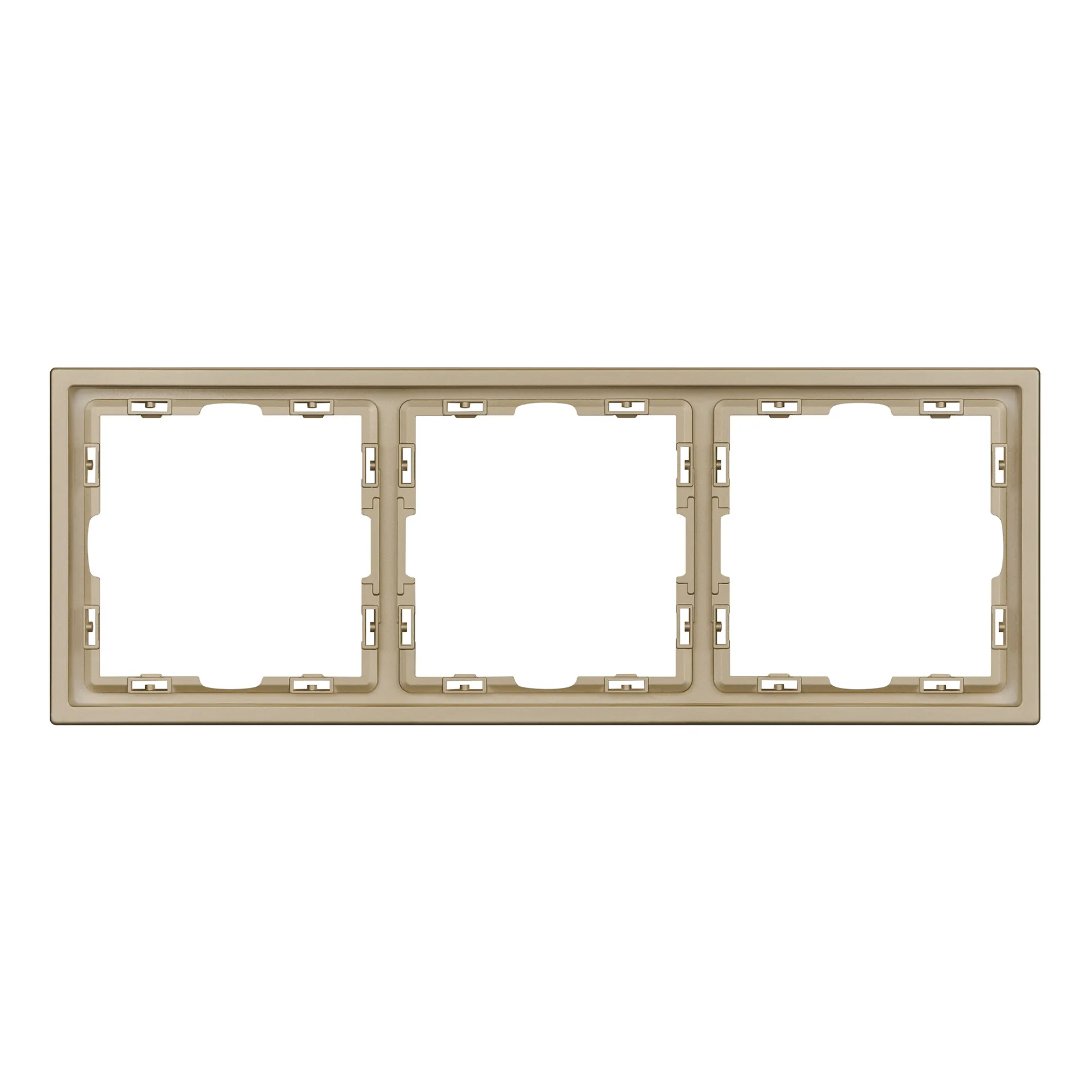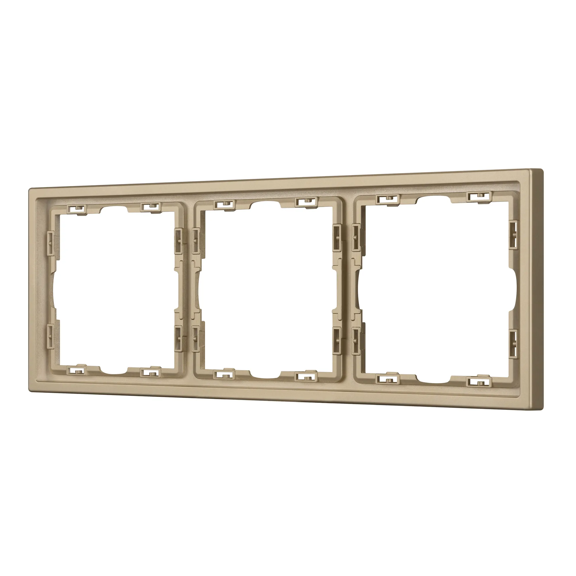 Корпус рамки выполнен в цвете золотой песок и имеет покрытие Soft-Touch, что придает изделию приятные тактильные свойства. Толщина корпуса составляет 8,5 мм, что позволяет эффективно интегрировать рамку в интерьерные решения любого уровня сложности.