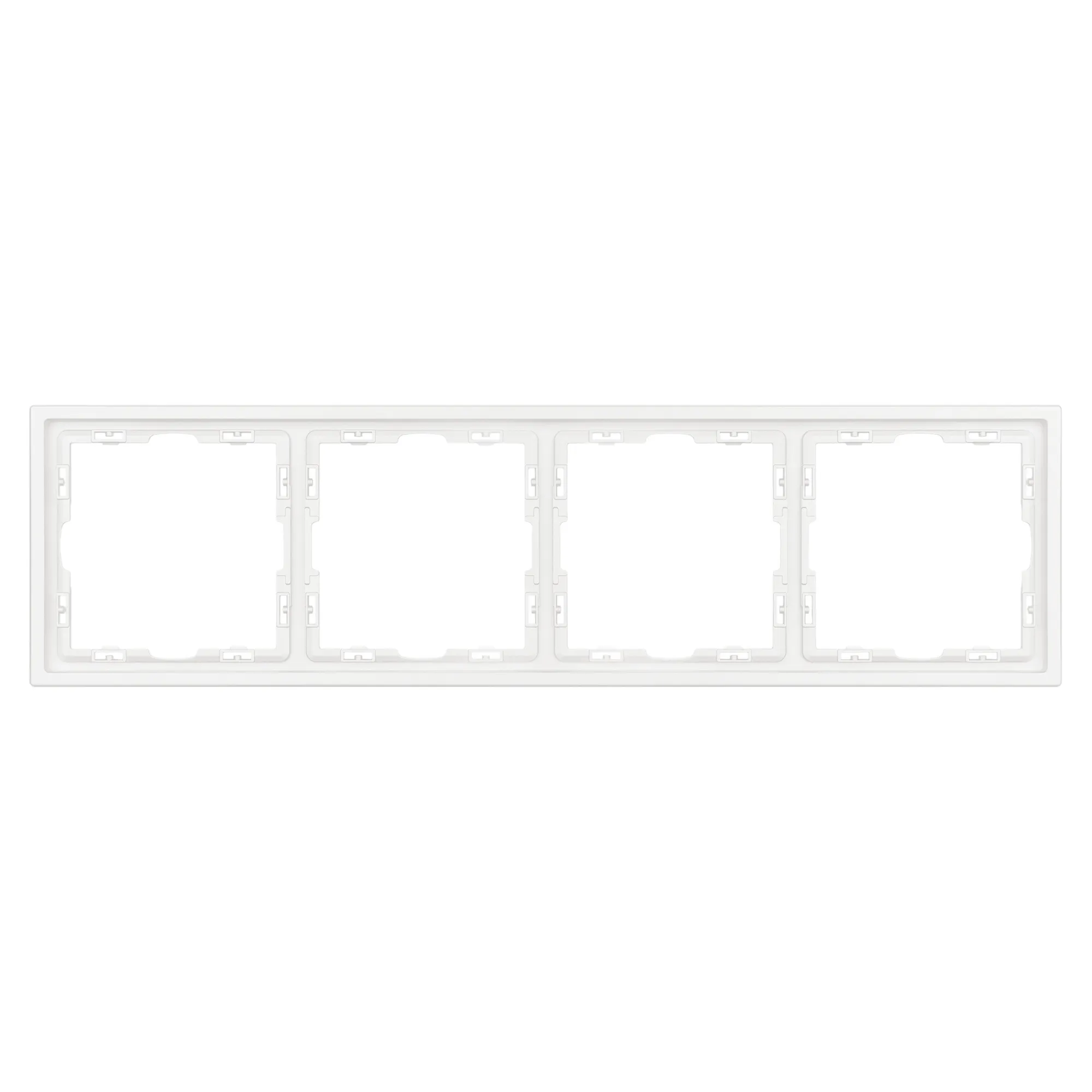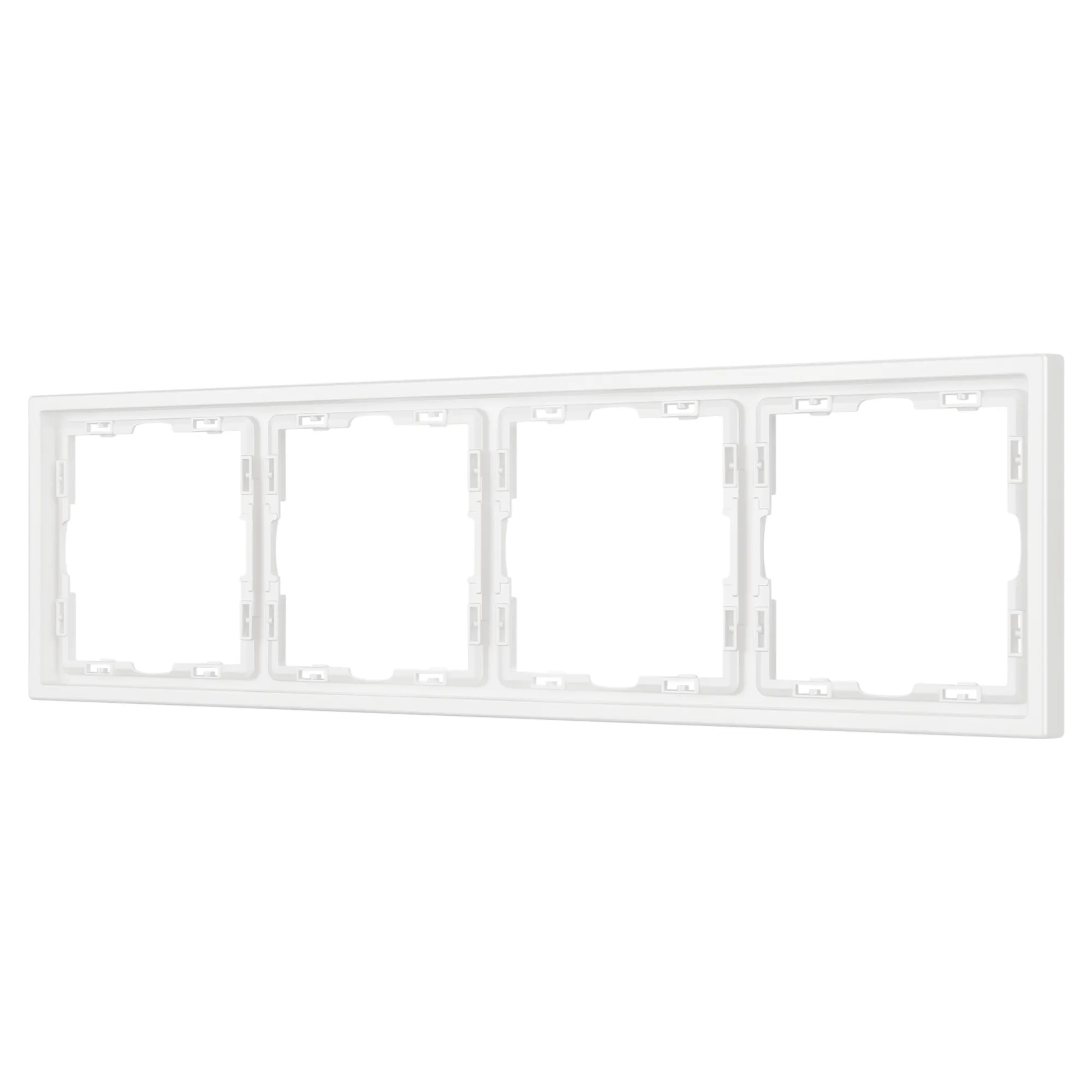 Корпус рамки выполнен в цвете белый кварц и имеет покрытие Soft-Touch, что придает изделию приятные тактильные свойства. Толщина корпуса составляет 8,5 мм, что позволяет эффективно интегрировать рамку в интерьерные решения любого уровня сложности.
