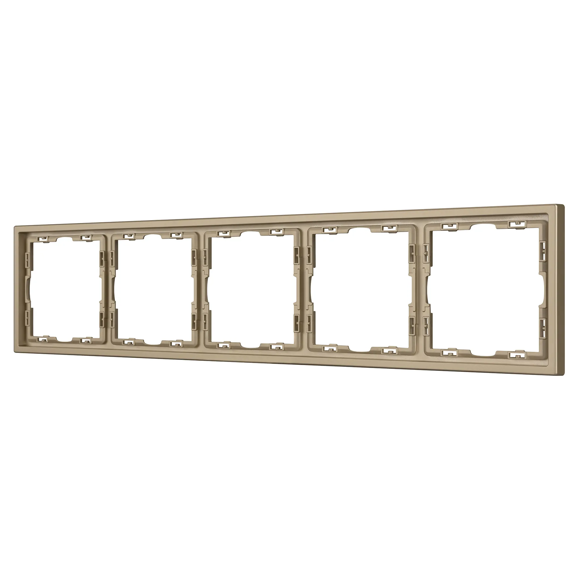 Корпус рамки выполнен в цвете золотой песок и имеет покрытие Soft-Touch, что придает изделию приятные тактильные свойства. Толщина корпуса составляет 8,5 мм, что позволяет эффективно интегрировать рамку в интерьерные решения любого уровня сложности.